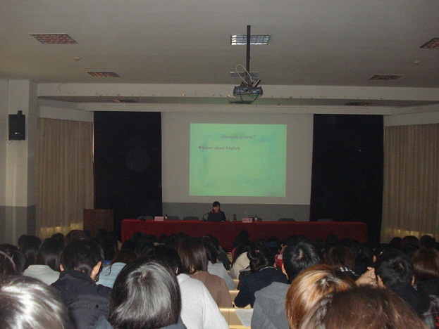 为提高本专业学生英语学习兴趣,有效落实新生认知实训计划,应用英语教研室于11月2日特地邀请了浙江大学博士骆蓉教授为10级全体新生作了“英语学习面面观”的讲座。骆蓉教授有着丰富的英语教学和研究经验,她的讲座深入浅出,涉及到了英语学习的各个方面:词汇学习、日常交际、翻译技巧、语音语调等,并为大家推荐了一些实用的英语学习途径和方法。在整个讲座中,现场气氛热烈,同学们听得非常投入,并认真地做记录。讲座结束时,同学们还围着骆博士询问英语学习方面的问题。同学们一致认为从这次讲座中收获了很多,并表示对今后的英语学习充满了信心。