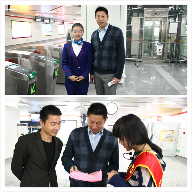 2012年11月21日,杭州地铁1号线体验日最后一天。民航与旅游分院副院长欧阳驹老师和总支书记王贤军老师,去城站、定安路站、客运中心站、九堡、金沙湖各站点,看望慰问在岗服务的“客服大使”。