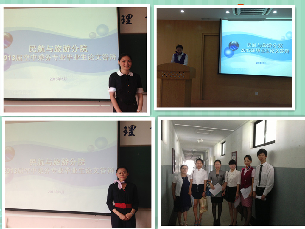 分院和教研室高度重视本次答辩工作,答辩前开展了答辩动员与准备会,对参与答辩的指导教师进行了指导和动员,对答辩文档记录和答辩后论文工作流程进行了培训和说明,5月30日,2013届空乘专业毕业论文答辩工作圆满完成。
