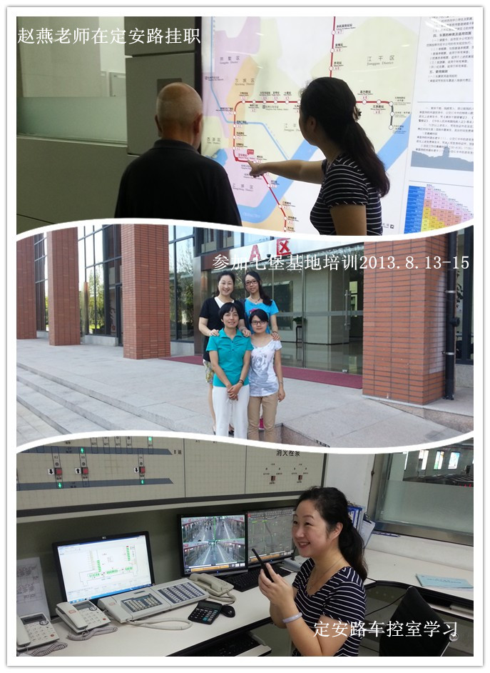 挂职分为2个部分,一是理论学习,二是车站实践。港铁公司尹总特别重视育英的教师挂职锻炼。专门为育英4名教师(赵燕、汪迎春、韩丽和李英)安排了3天的培训(8月13-15日):第一天是肖琴芝培训师为我们进行车站助理培训,第二、三天由赵燕梅培训师进行《通信信号》和《行车组织》的培训,还带我们去了七堡培训基地进行实地操作。我们见识了地铁道岔、换轨、进站出站以及维修保养;系统了解了杭州轨道交通通信和信号系统。其他时间,我们分头在定安路车站进行站务实践。定安路的站长特别关照我们这些大龄学生,安排了专门的行车值班员一对一的担任我们的“师傅”。除了在站台,站厅,票厅服务外,我还非常有幸天天跟着师傅,在车控室学习,帮站长安排下面工作人员的值班表,学习了一些轨道管理知识。