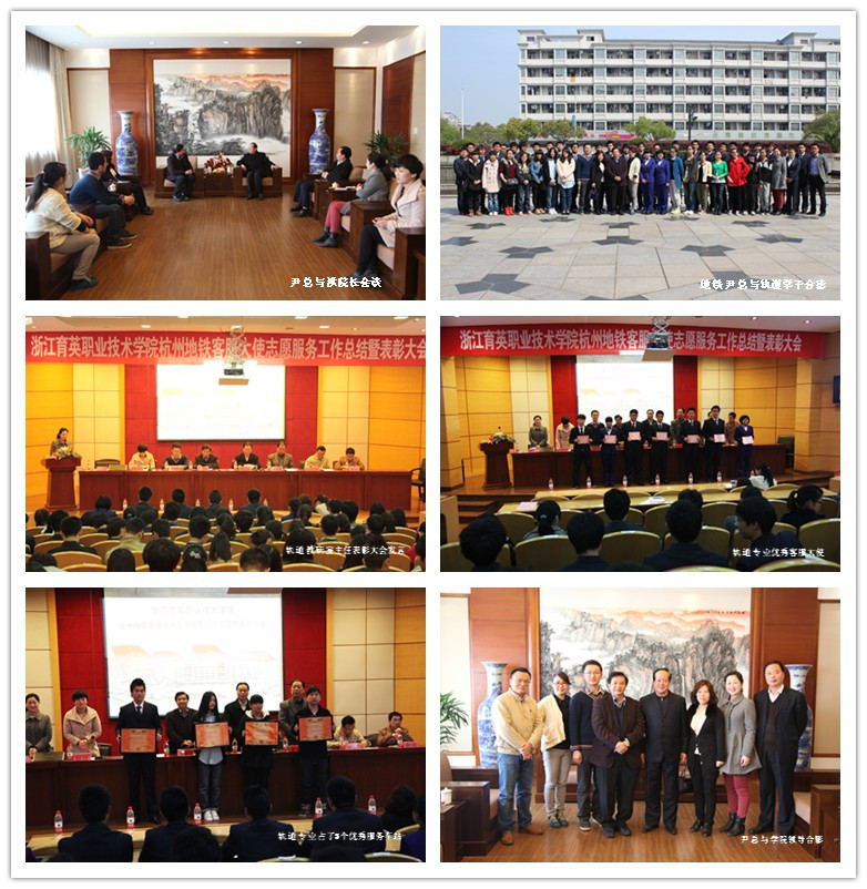 表彰大会上,首先由轨道教研室主任赵燕介绍了地铁一号线“客服大使”的整体情况,学院副院长陈六明宣读志愿服务工作表彰文件,并进行了颁奖。在4个优秀服务车站中,12轨道班服务的3个车站(城站、客运中心和定安路站)都榜上有名。接下来杭港地铁尹总、运营部员工何彦燕、城站站长王晋辉纷纷对于此次客服大使的工作谈了自己的感想,表达了对学生们辛勤工作的肯定以及美好的期望。大会在学院党委副书记、副院长周治斌铿锵有力的讲话中告一段落。