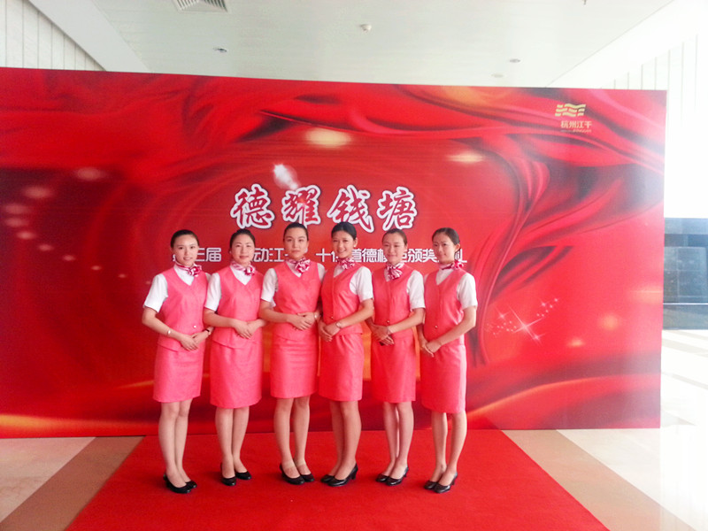 2013年6月14日星期五下午3点,在杭州电视台1号演播厅进行德耀钱塘第三届“感动江干”十佳道德模范颁奖典礼的录制。浙江育英职业技术学院民航与旅游分院空中乘务专业的六名学生在分院团总支书记髙嘉佳的带领下参与该典礼服务。