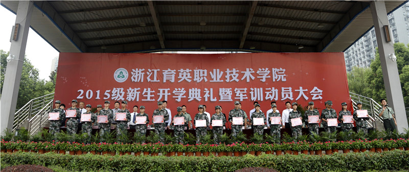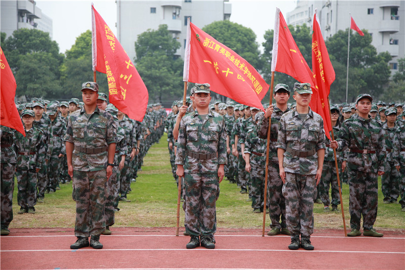 军训教官代表郭占江、教师代表阮澎飞,老生代表周莉莎、新生代表应家豪分别上台发言,表达了对新生军训、学习和生活的美好祝愿。