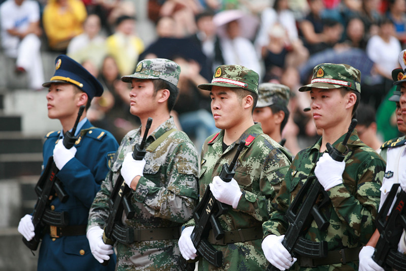 73021部队的21名战士也来到学院,整齐划一、铿锵有力的步伐展示了当代军人的风采,掀起了整个阅兵式的高潮。现场师生瞬间沸腾,掌声、欢呼声,相机的咔嚓声,此起彼伏。随即微信朋友圈被刷屏,全是帅气兵哥哥的飒爽英姿。