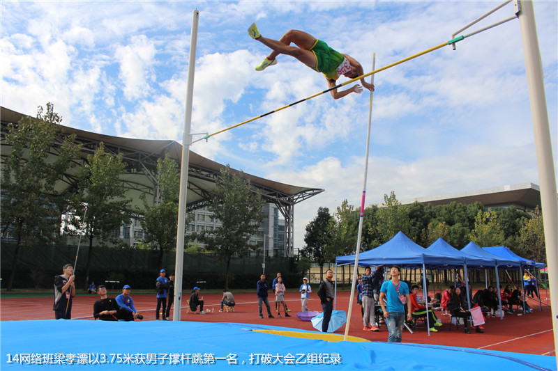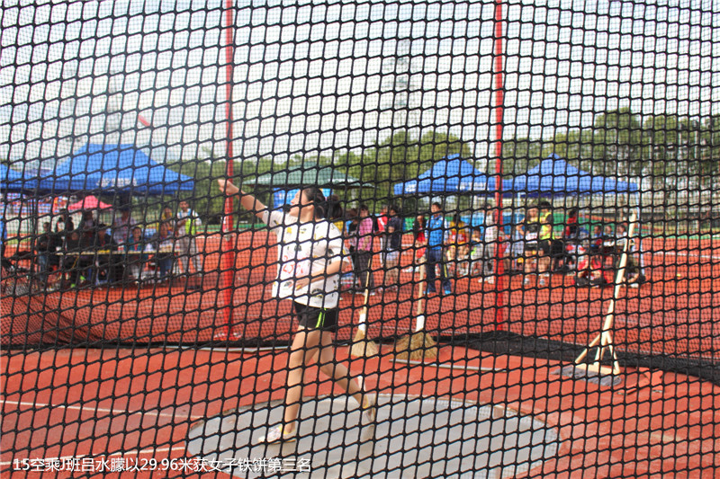14网络班梁孝漂以3.75米获男子撑杆跳第一名,打破大会乙组纪录。15空乘J班俞凯以41.77米获男子铁饼第一名,打破大会乙组纪录。13轨道A班曹晨敏以35.08米获女子铁饼第一名。15空乘J班陈宇良以37.27米获男子铁饼第二名,打破大会乙组纪录。14英语B班蒋福华以3.50米获男子撑杆跳第二名。翁鑫兴、钮晨恩、方兴、周盈盈以4’21”87获女子4×400米接力第二名。15空乘J班吕水朦以29.96米获女子铁饼第三名。14安检A班柯政以33.35米获男子铁饼第四名。
