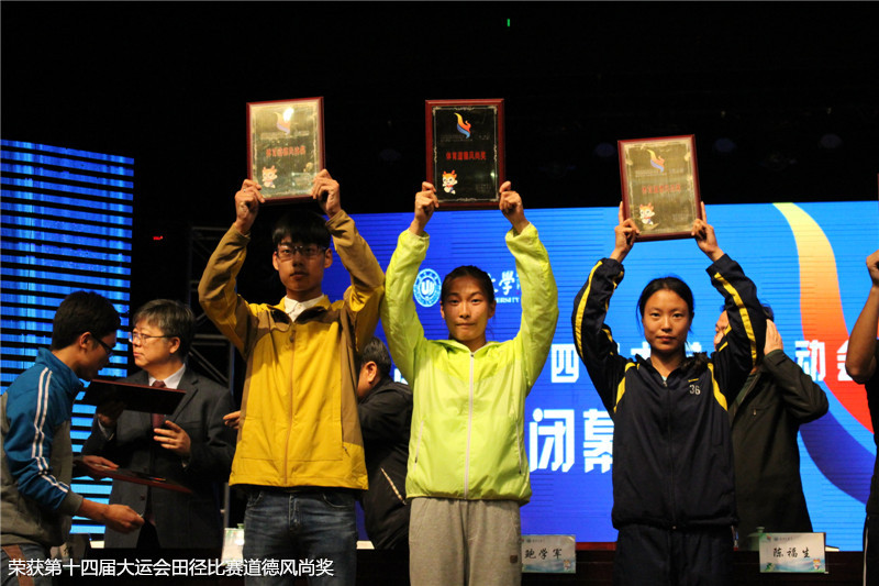 在为期5天的田径比赛中,育英健儿不畏艰难困苦,奋勇拼搏,共斩获11金10银7铜,12人次破7项大运会乙组纪录,1人次平大会纪录,并荣获第十四届大运会田径比赛男团、女团、总团第一名以及田径比赛道德风尚奖。最终夺得浙江省第十四届大学生运动会12个比赛项目的总团体冠军、体育道德风尚奖。