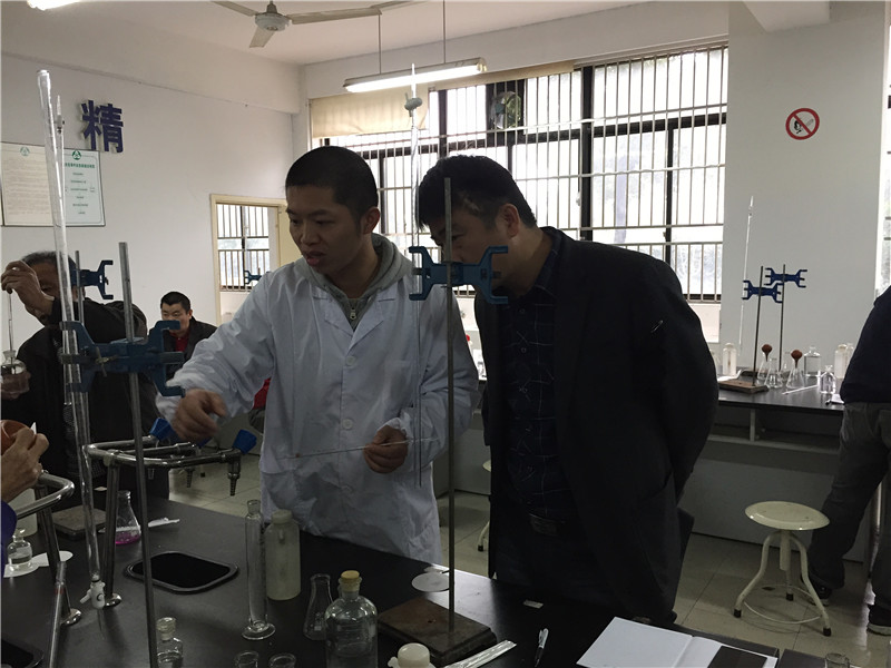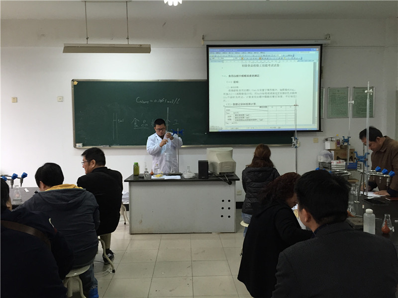 此次培训内容包括食品检验工(初级)饮料检验的理论学习和操作技能学习两部分。食品教研室茅小燕、吴清盛和周纪东三位老师根据学员的特殊情况,合理选择教学内容,精心备课,理论培训中从日常生活中的实例深入浅出,操作技能培训中采用反复演示,学员们边看边做,最后老师们采用一对一教学,逐个过关,做到人人学会操作。两天的培训中学员们都能克服各种困难,坚持准时到课,课堂上个个都认真地做笔记,一遍又一遍地实践操作。