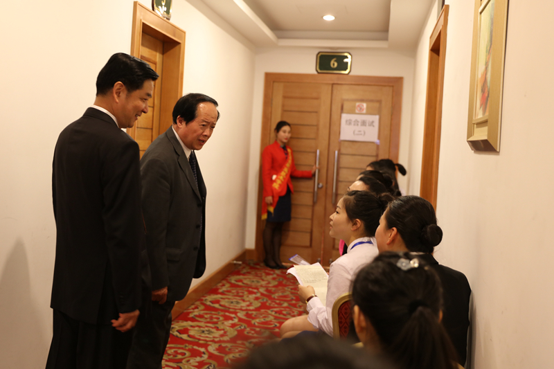 综合面试环节的考官由航空公司专家以及学院空中乘务专业教师组成,具有丰富的航空服务经验。考官们参照航空公司选拔乘务员的标准,主要通过考生自我介绍考察口头表达能力,通过他们的站姿、走姿和肢体语言来考察身材、气质,通过提问考察考生沟通能力、应变能力和亲和力等综合素质。