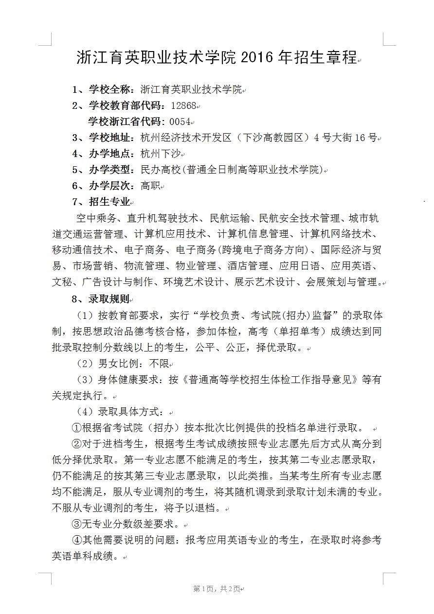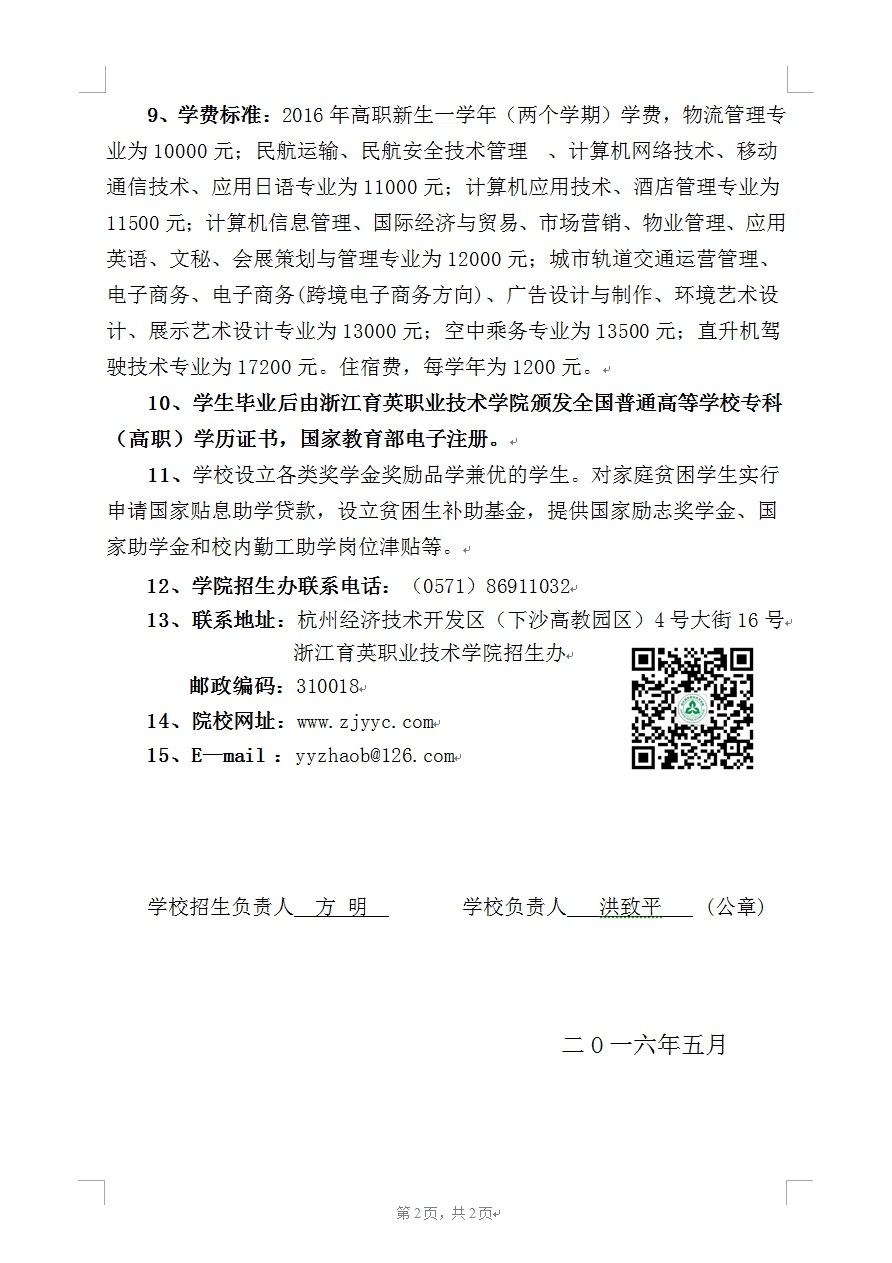 我院2016年招生章程