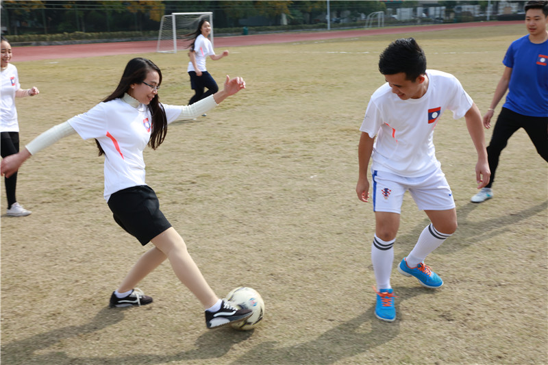 会后,来自浙江大学、浙江工业大学、浙江工商大学、浙江师范大学、浙江理工大学、浙江财经大学、中国美术学院、杭州电子科技大学、杭州师范大学、浙江警察学院以及学院的老挝留学生还举行了老挝留学生足球友谊赛,学院还为留学生准备了丰盛的、具有老挝特色的午餐。