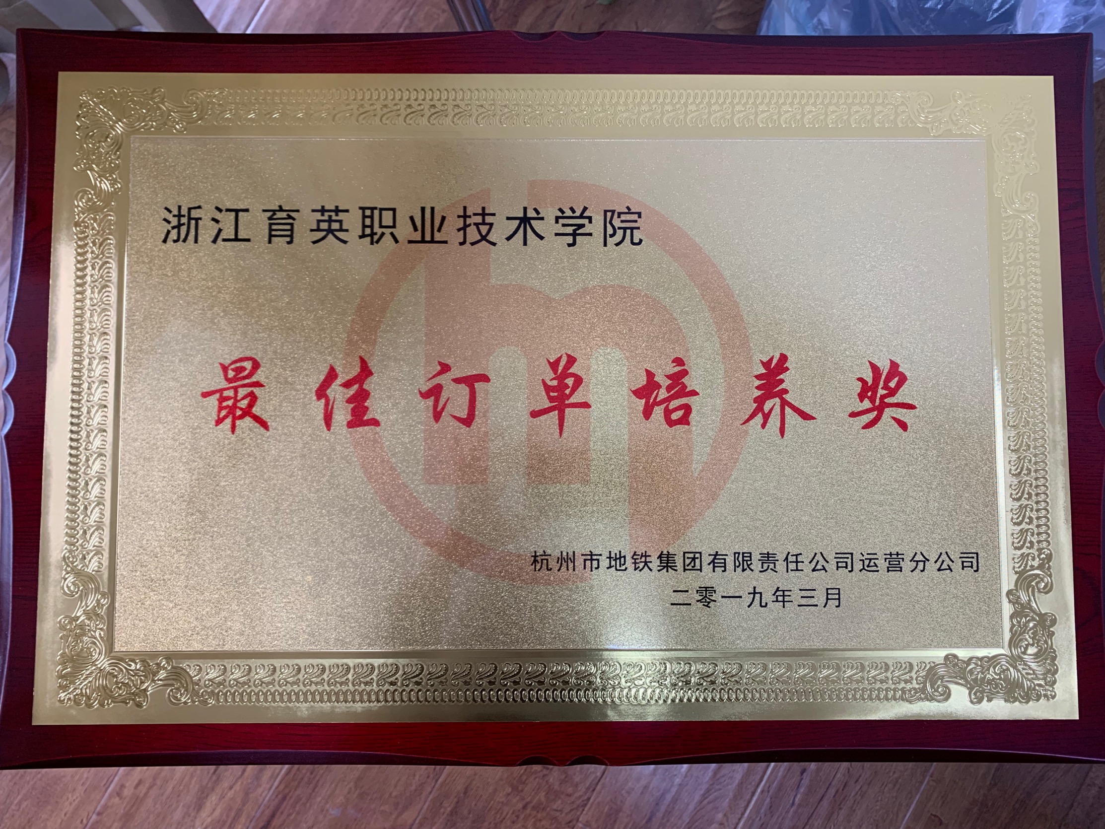 学院荣获杭州地铁集团校企合作最佳订单培养奖