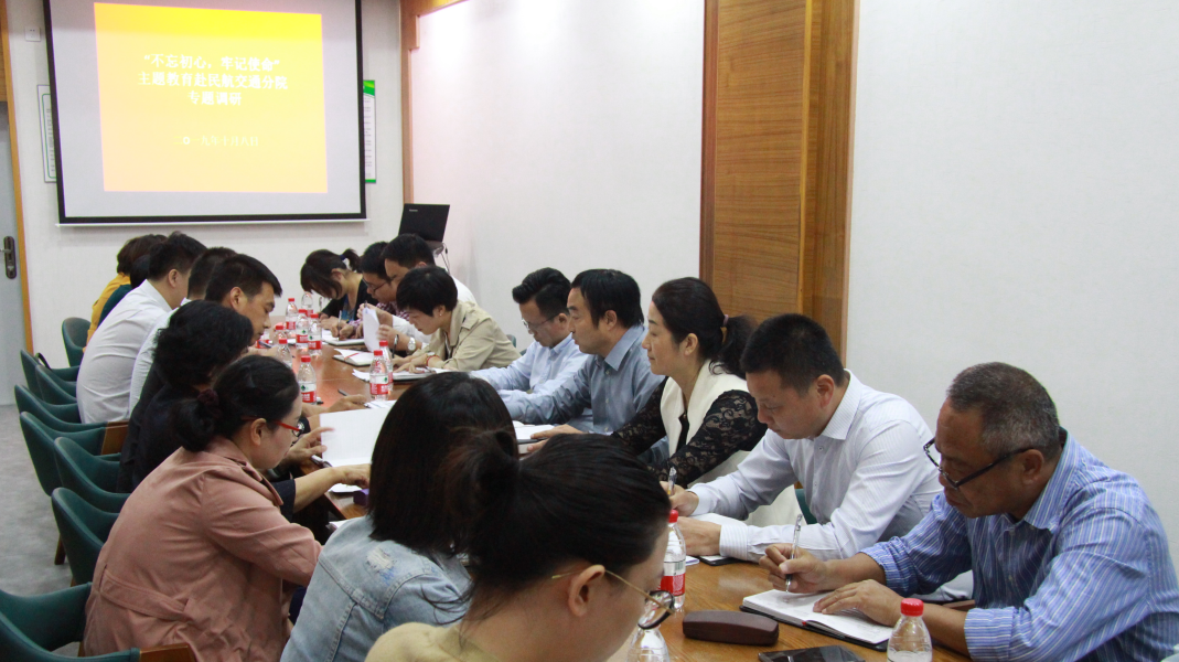 10月8日下午,由学院领导王锡耀、谢鑫、王敏、徐晓斌和相关职能处室负责人组成的专题调研组一行,围绕扎实推进第二批“不忘初心,牢记使命”主题教育根本要求,在民航交通分院开展主题教育专题调研座谈活动。民航交通分院班子成员、教研室主任(秘书)以及教师代表参加座谈。学院党委书记、院长王锡耀主持座谈并发表讲话。