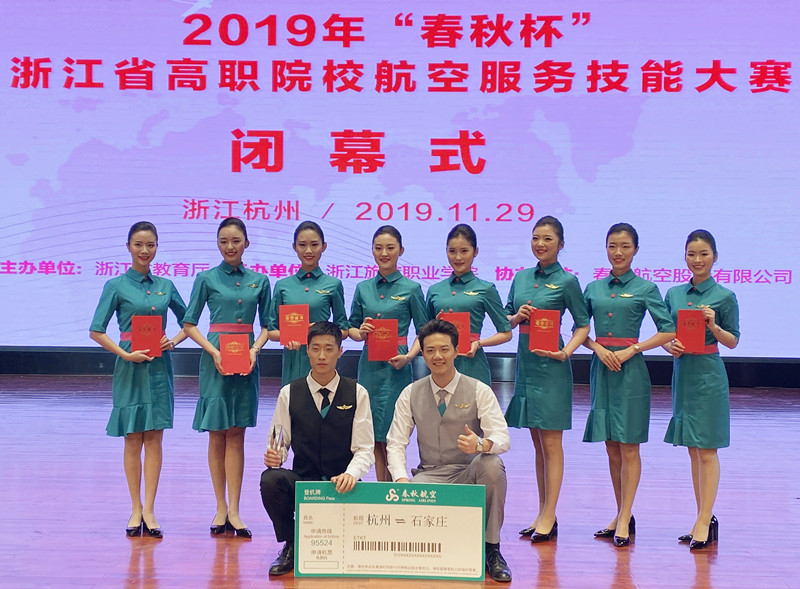 11月28日至29日,2019年“春秋杯”浙江省高职院校航空服务技能大赛在浙江旅游职业学院举行。大赛由浙江省教育厅主办,春秋航空冠名、浙江旅游职业学院承办。共有8所高校16支代表队共80名选手参赛。我院选拔派出10名空乘专业学生参赛。