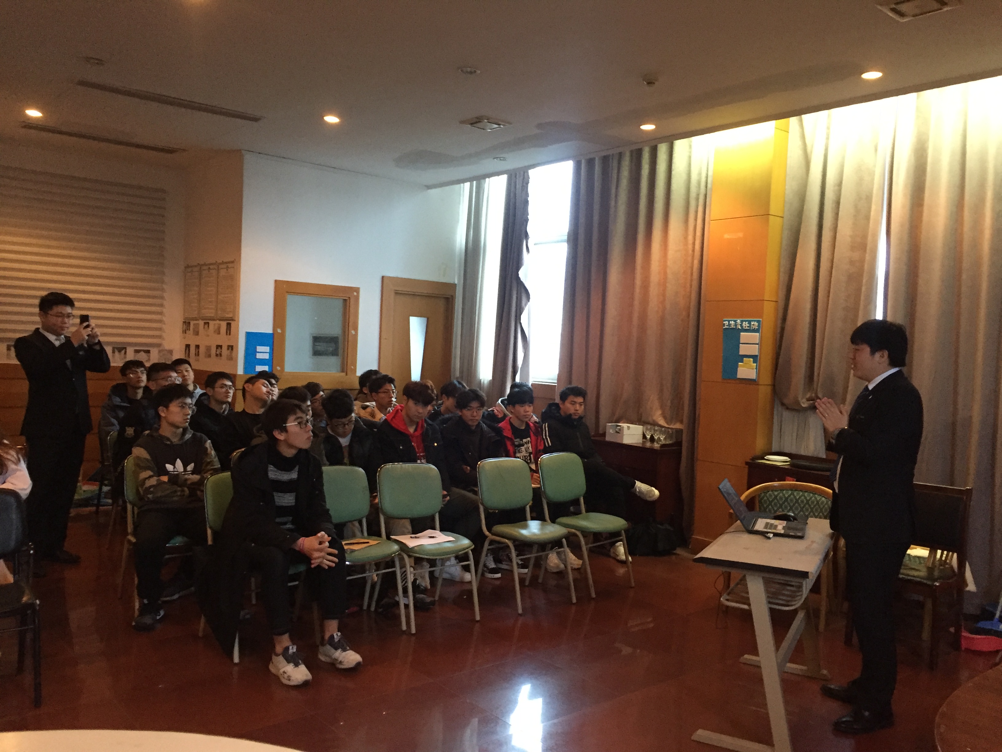 今天上午,与会学生和洲际酒店的Martin经济和宴会高级经理Mr Weng在餐饮和调酒实训室进行了关于婚宴接待活动的特别培训。两位专家详细讲解了婚宴接待服务的礼仪要求、流程要求和质量标准,将杭州洲际酒店的质量体系作了较为系统的培训。同学们认真专注,气氛热烈,并表示获得良多,也对即将到来的服务活动充满期待。