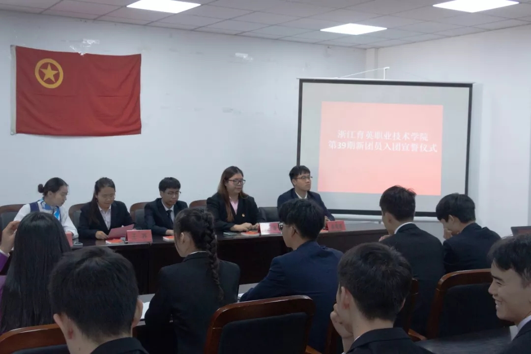 2019年11月14日,浙江育英职业技术学院第39期新团员入团宣誓仪式于1208A光荣举行。