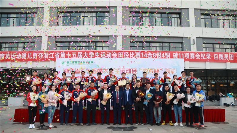 11月6日-10日,浙江省第十五届大学生运动会田径比赛在杭州师范大学仓前校区举办。育英学院16名运动员参赛,勇夺14金8银4铜,破11项赛会纪录,以355分的总成绩,包揽高职高专组男团冠军、女团冠军、总团冠军。梁延旺、杨佳威、张婕获“优秀运动员”称号,汤剑辉获“优秀教练员”称号。学院获得体育道德风尚奖和“校长杯”表彰。