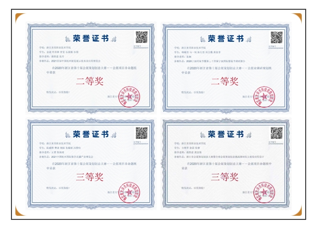 获奖成绩:2020年浙江省第十届会展策划创意大赛--会展项目非命题组三等奖