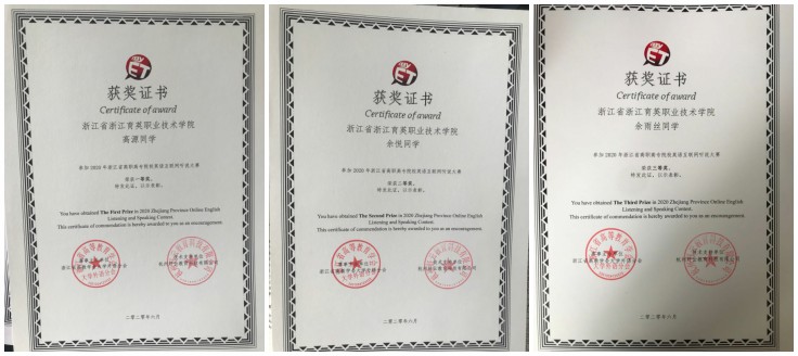 经济管理分院学生在2020 年浙江省高职高专院校英语互联网听说大赛中喜获佳绩