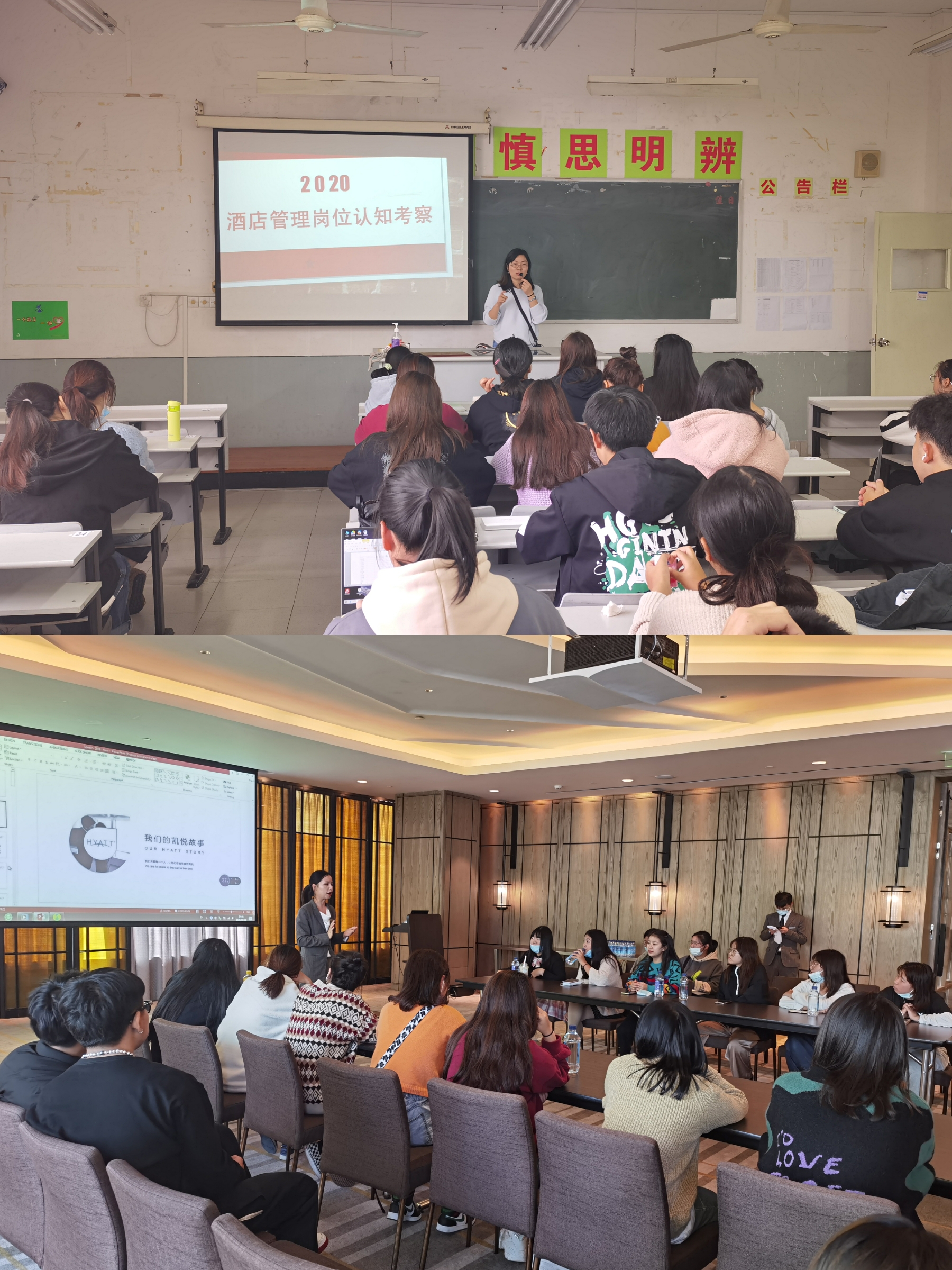 11月16日上午,经济管理分院2020级酒店管理专业两个班的同学分别在各自教室参加了认知实训动员会,占胜老师、徐芳老师分别负责为洲际英才班、国际班进行有针对性的实训动员。此次认知实训与以往实训组织形式不同,专业教研室给新生布置了三个课题,各班学生可自行选择其中一个课题并组成相应团队,自主策划课题实施计划、自行组织实施,最后提交课题成果。实训活动由原先的老师主导、学生参与形式变为学生主导、老师辅导的形式,目的在于激发学生明确实训目的、提升自主学习能力、培养组织能力及团队合作能力。动员会上,两位老师除了向同学们阐述认知实训的意义、目的和要求外,主要详细地跟同学们介绍了本周认知实训的时间安排、注意事项,以及如何来完成课题任务。会后还与各小组组长进行实训准备情况的沟通,了解各组学生当前对完成课题所做的准备工作并对策划不周全的地方、实施过程中易出问题的地方进行了指导。下午,20国际班按计划考察了杭州柏悦酒店,学生除了常规地参观了酒店各功能模块的设施设备外,专门与酒店专业人士开展了沟通交流,各组把自己事先准备好的与课题调研内容有关的问题进行了访谈。希望酒店专业学生可以保持主动学习的精神,通过1周的专业认知实训,能更清楚的了解自身专业情况,找到自己职业发展目标,更好地规划三年大学生活。