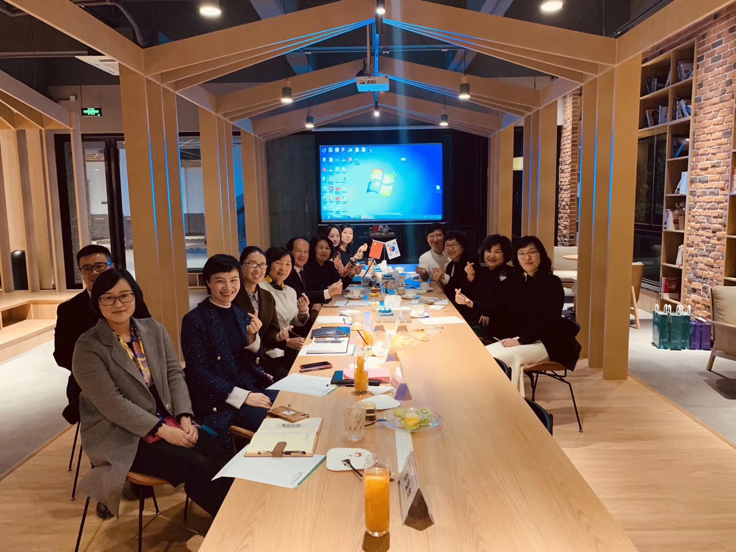 2018年5月我院与韩国光州女子大学进行人物形象设计专业建设研讨会(右二为光州女子大学校长李善宰女士)。