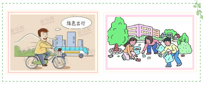 要尊重自然、顺应自然、保护自然,学会低碳生产生活方式,自觉践行绿色生活。积极参与到清垃圾、爱校园工作中,对学校附近、操场、篮球场等地存在的垃圾要主动捡拾。消除班级、家庭卫生死角,主动参与校园绿化美化净化,保持个人卫生,助力打造绿色整洁环境。