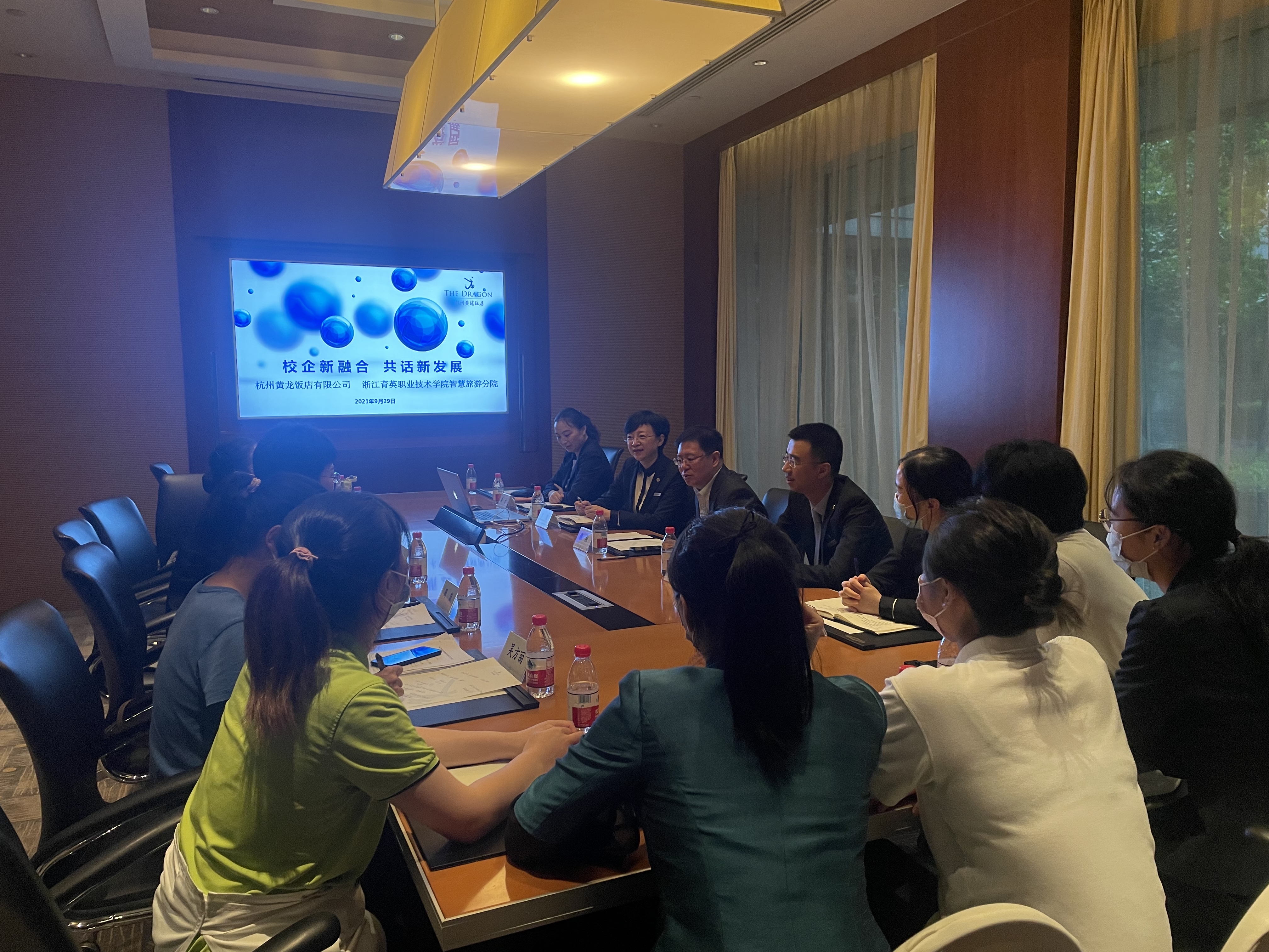 9月29日-9月30日,智慧旅游分院院长黄华老师、副院长周岚老师携酒店管理与数字化运营专业的老师、实践老师们一行五人共同拜访了杭州黄龙饭店和杭州洲际酒店,就“校企新融合、共话新发展”进行深入的探讨,并了解分院19级酒店管理与数字化运营专业在该两家酒店实习的17位学生的实习工作,为他们送去了国庆佳节的祝福和慰问,此次走访受到酒店方的热烈欢迎。