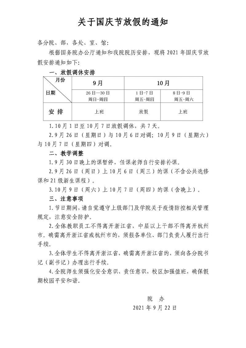 关于国庆节放假的通知