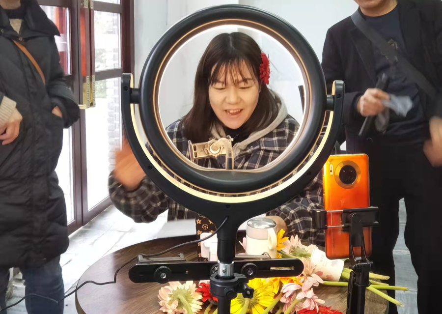 学员彭淑琴开了一家零售淘宝店,一直想在直播间里卖零食,现在学会了开通抖音账号、搭建直播间、直播话术等基本知识,她表示会马上启动自己的直播带货之路。