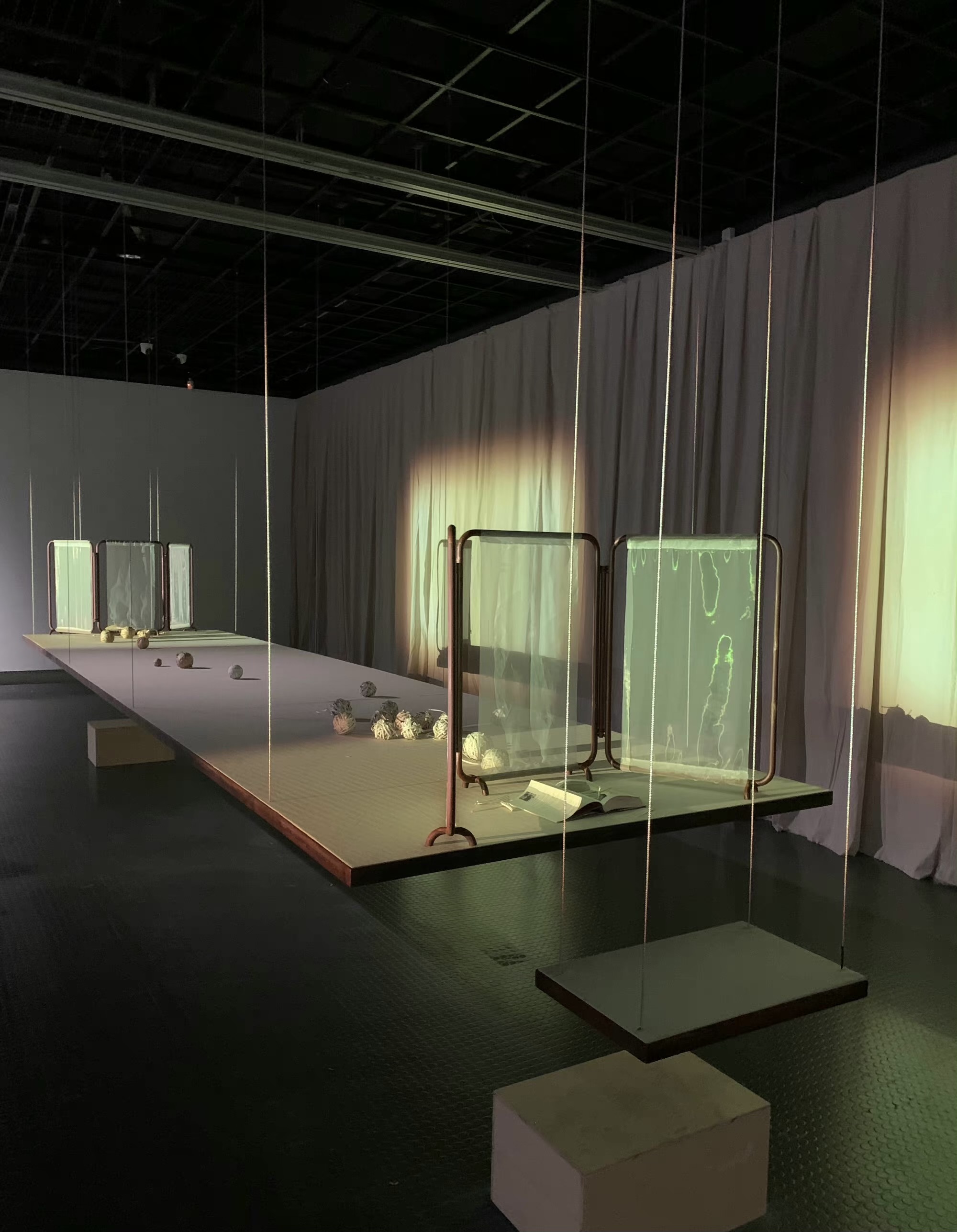 “本届杭州纤维艺术三年展主题为“缓存在/Being Theoria”。这是经2013年“纤维,作为一种眼光”、2016年“我织我在”和2019年“无界之归”三届后的延续与发展。本次三年展由十数个国家、60余名艺术家/团体、近百件杰作缔结的广阔纤维世界正式开启,呈现出近三年来纤维艺术发展的新动态,以纤维艺术的多媒体方式展开了全球化与在地性之间的多重对话。