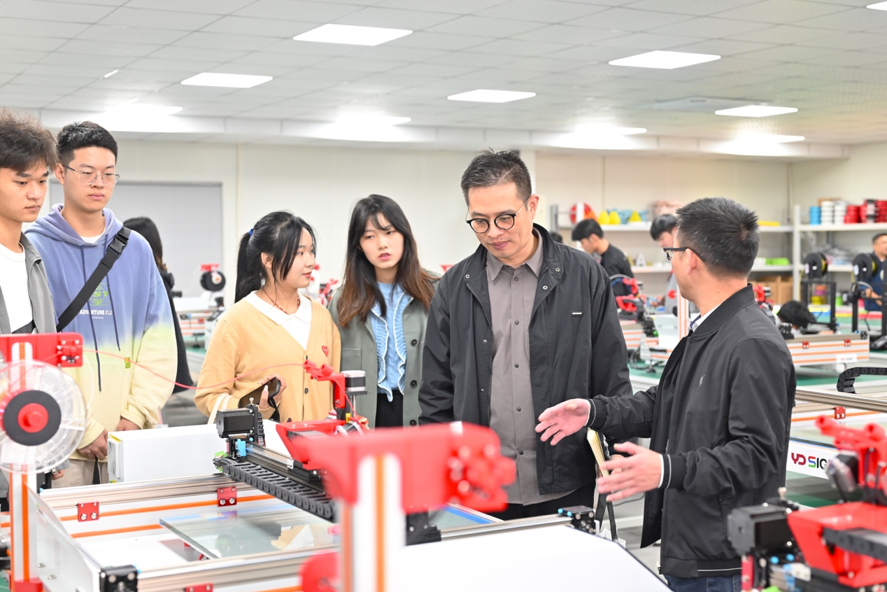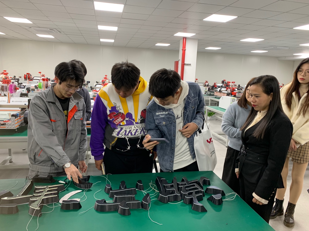 10月22日,宋连凯院长、周黎铃老师带领参与工作坊的12名同学走进杭州勇电照明有限公司参观学习,并由企业方向同学们正式发布了本次校企合作工作坊的课题。董事长助理为同学们介绍了企业的概况、主要产品,以及在户外景观照明行业取得的成就,让学生们对勇电有了初步的了解。勇电照明董事长徐松炎以“3D打印在照明行业的应用”为主题,详细地为师生介绍了勇电产业新布局—— MMLA 3D打印户外高分子合金耗材。在同学们了解了3D打印耗材的特点后,董事长现场发布了此次校企合作工作坊的设计课题——可用3D打印实现的、应用于商业综合体的照明产品设计。此后,勇电工作人员们带领师生参观勇电3D打印室、生产车间、展厅及实验室,让同学们对企业、对此次工作坊课题有了更为具体的了解。
