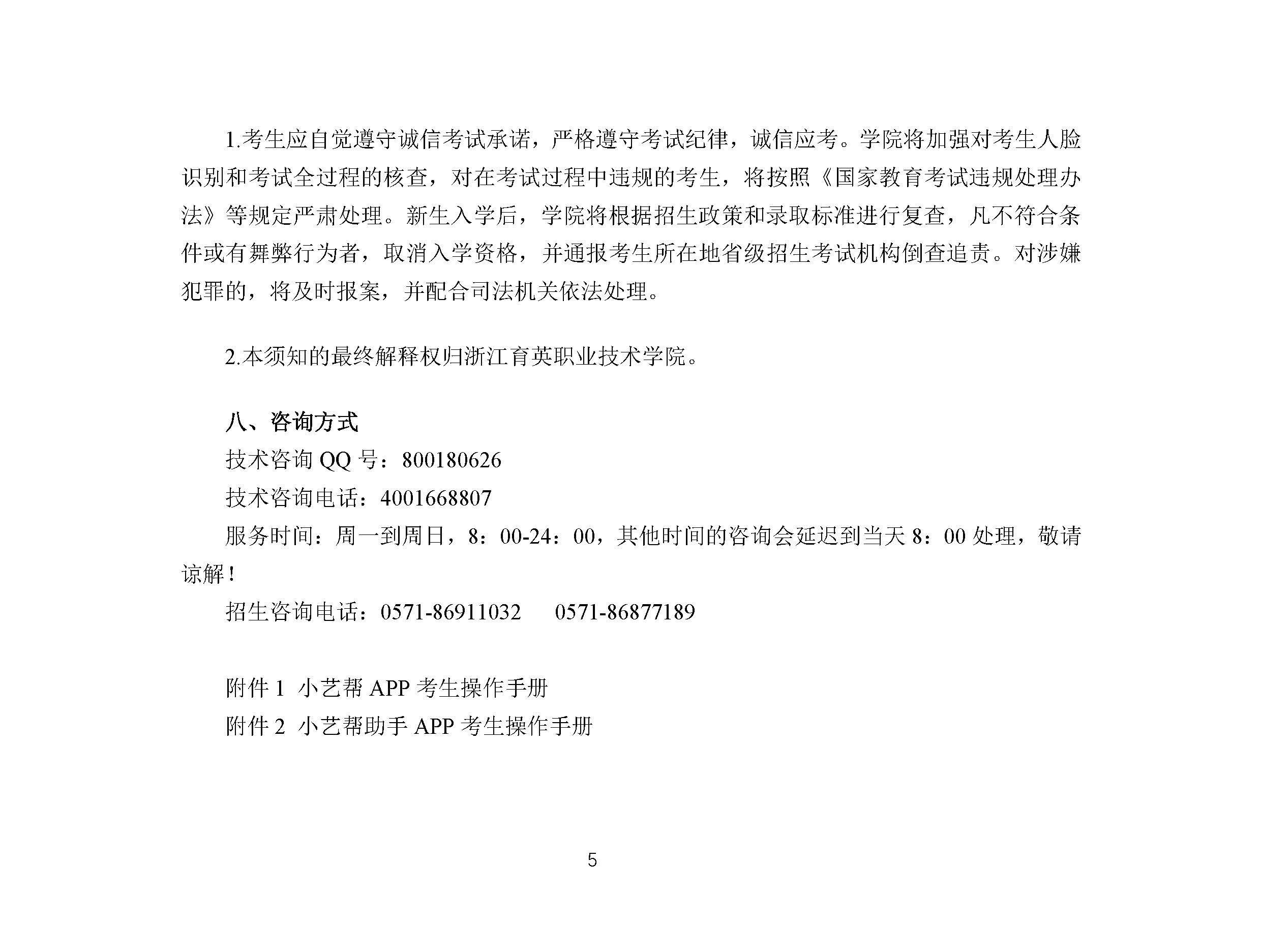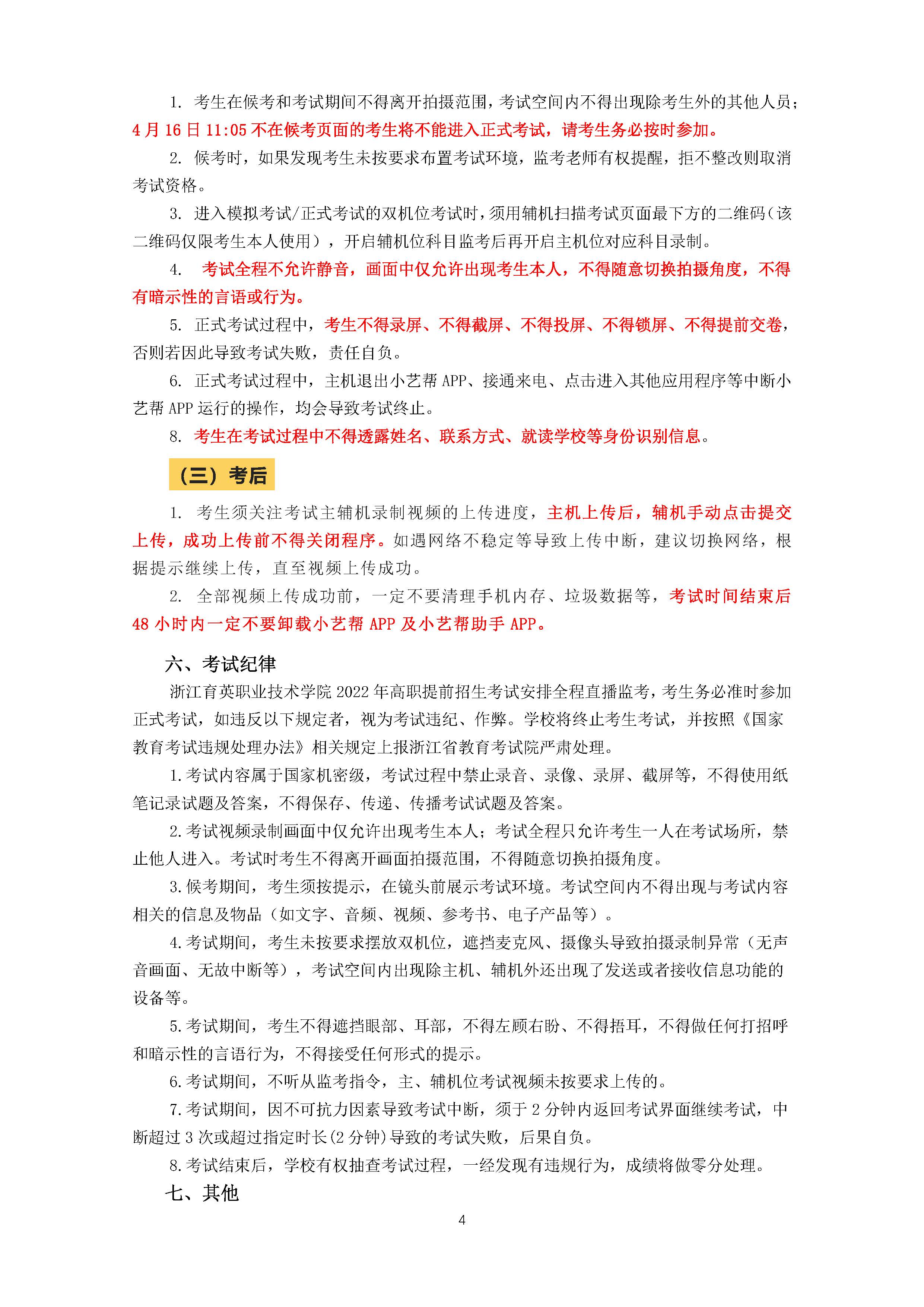 浙江育英职业技术学院2022年高职提前招生综合测评线上考试考生须知