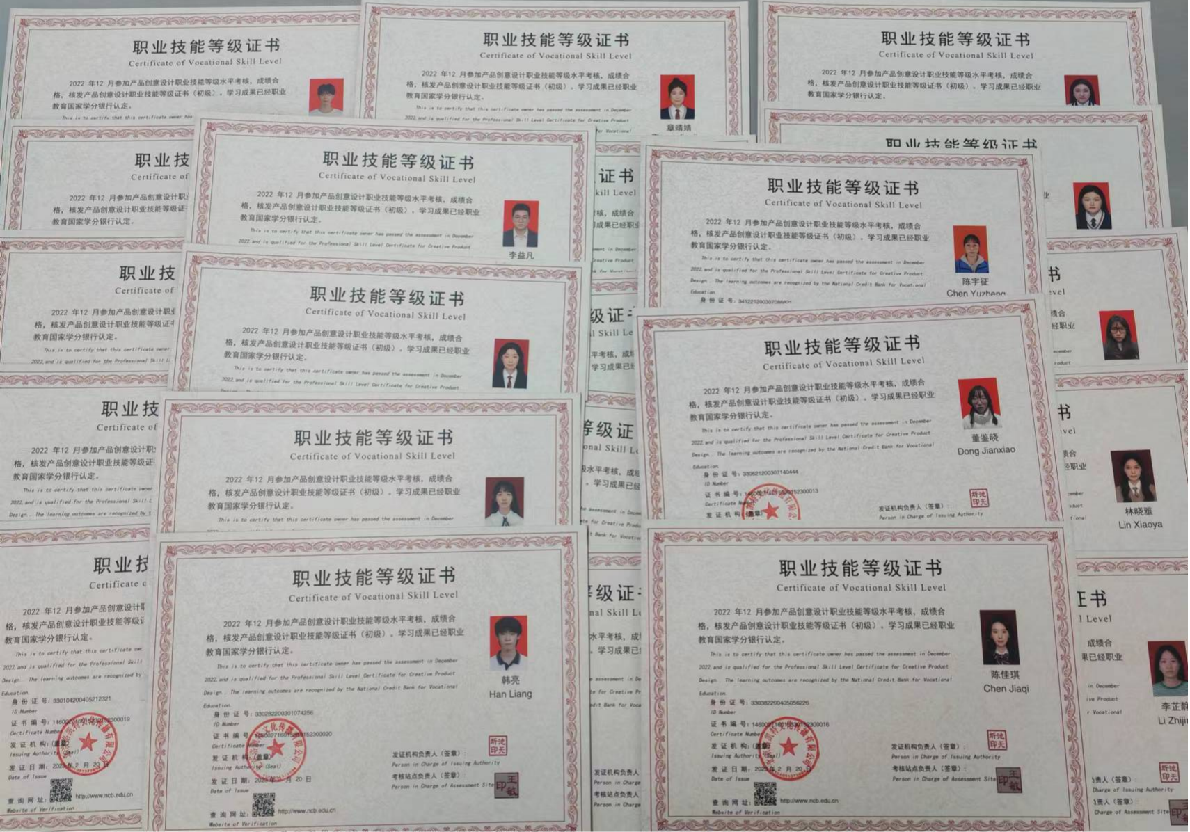 在2022年12月29日疫情的影响下,产品艺术设计专业22名学生,经受着身体极度不舒服的情况下,居家通过网络,如期坚持完成了“1+X”产品创意设计职业技能等级考证,该场考证分为两大部分来开展,其中上午为理论考试,下午为实操。如今,经考级办的严格审查和批改,我校产品专业学生全部顺利通过了考证,证书纸质版已送达我校。