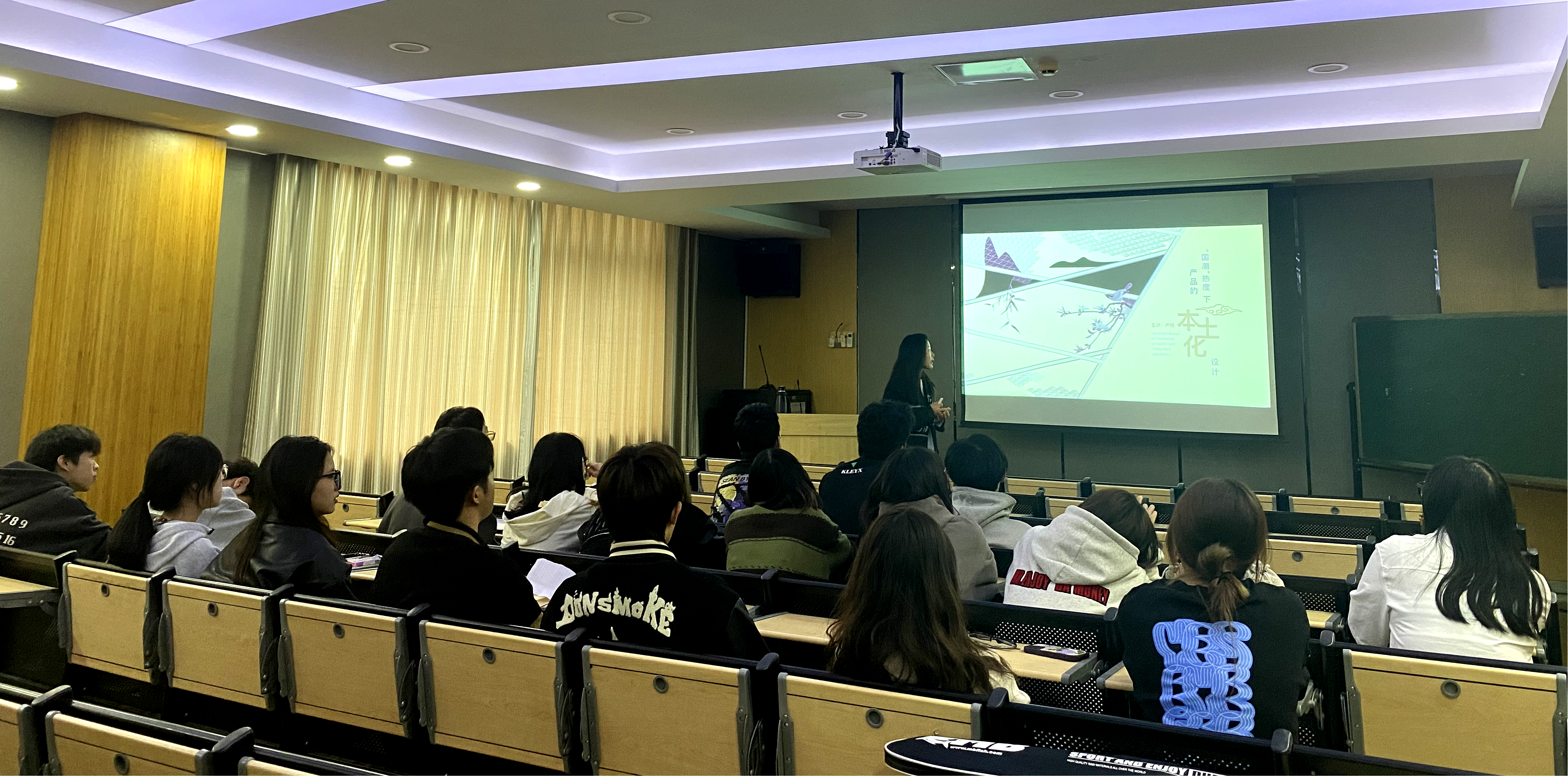 本次讲座卢老师以自己设计的产品开篇,分别从国潮现象出现的原因、本土产品的“国潮” 化设计方法、跨界合作的异花授粉、本土产品设计“国潮”化的未来思考这四个环节展开,卢老师通过大量的设计案例,总结分析并告诫同学们,“国潮”的流行,不仅彰显着中国制造水平的提升,更体现出当代中国旺盛的文化创造力。目前很多本土设计品牌不断的兴起,实实在在的呈现了中国潮流群体的不断壮大与发展。在文化的引导中鼓励同学们要热爱生活、热爱设计,做一个生活中的有心人,并且鼓励当代大学生要怀有设计热情,作为设计师传播东方文化任重而道远。