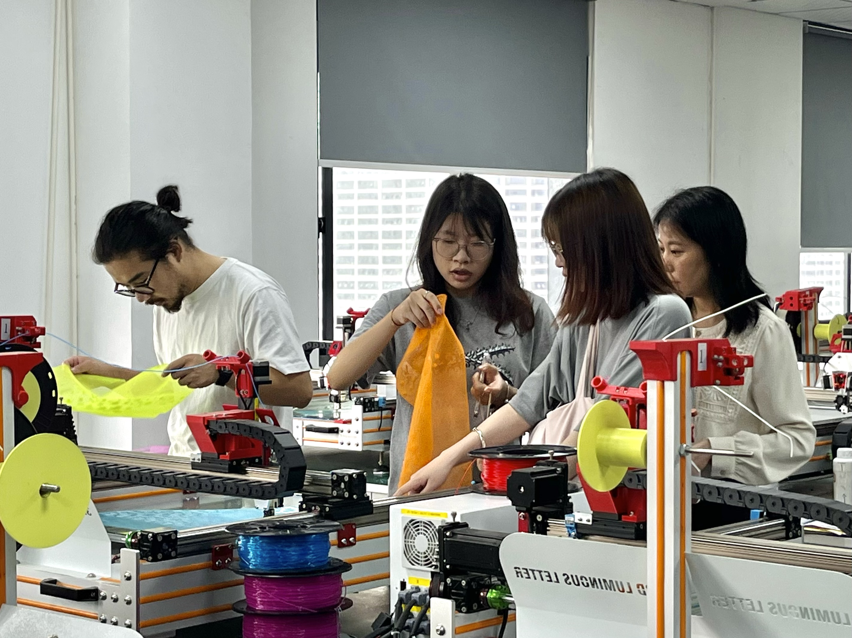 一大早,在范志老师的带领下,21产品班的同学们,将前期在学校设计的方案,带到了杭州勇电照明有限公司六楼会议室。同学们怀抱着严谨、自信的态度,呈现了前期的设计方案,与勇电照明专业人员共同商议着方案的创意点、建模中所遇到的问题和困难,勇电照明的专业人员通过他们的丰富工作经验,分析指出同学们在创意设计建模中所存在的不足之处,并分析了进行作品3D打印之后,会出现的问题,这为同学们的创意设计,提供了非常好的实践经验。公司领导王总更是带领着同学们,细致分析讲解了数字3D打印技术,并对3D打印的整个流程,进行了深入剖析和讲解。同时对当下几种3D打印新型原材料进行了细致的介绍,让同学们开阔眼界,思考自己的设计方案,如何更好地呈现。同学们都表示,此次校企共育课堂是非常有意义的学习活动,是一段令人难以忘却的实践学习机会,对产品艺术设计有了更深入的理解与感悟,特别是得到了企业一线专业设计人员的现场指导,收获非常之大。