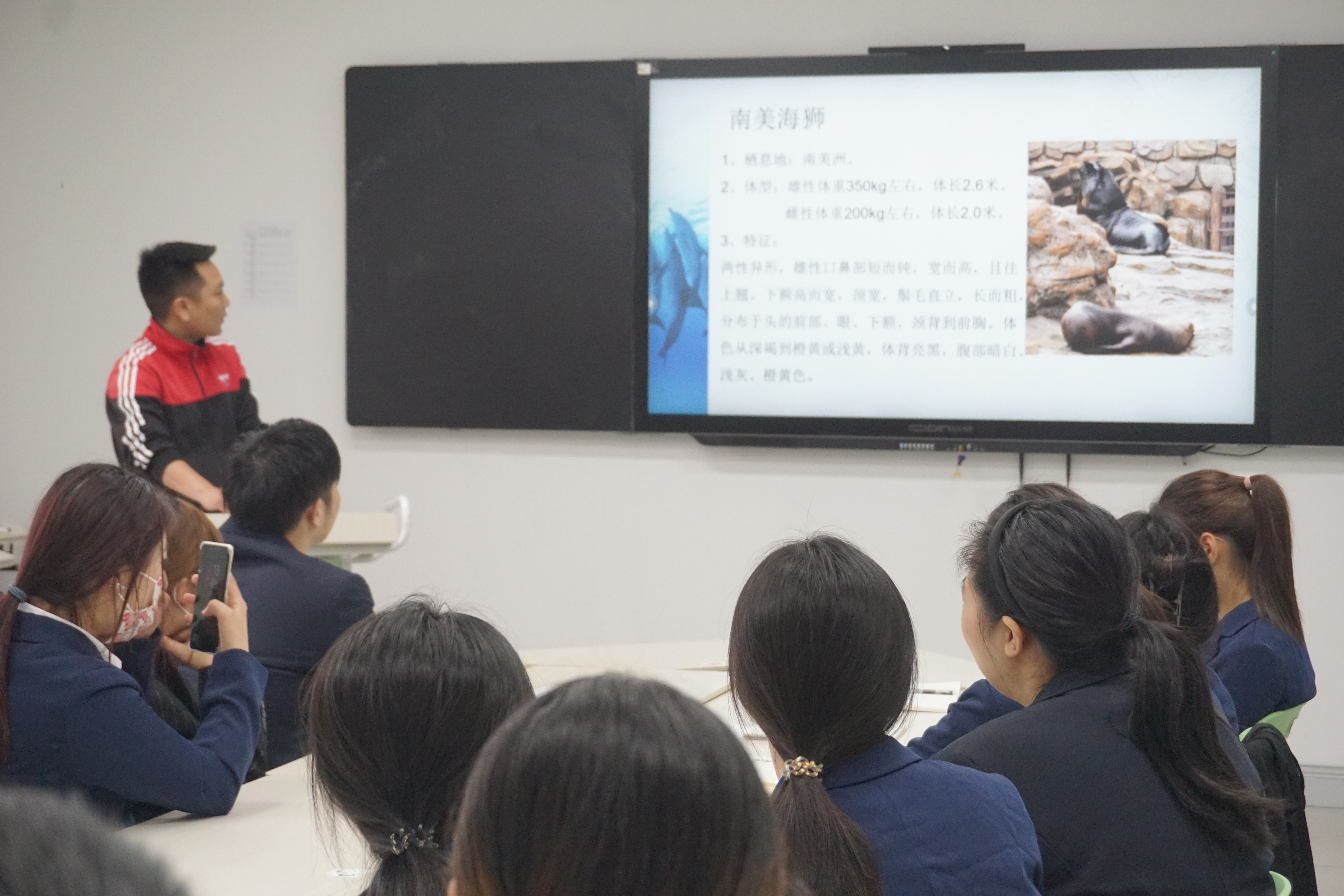为落实立德树人根本任务,推进三全育人综合改革,同时也为提升学生专业综合能力,提高就业竞争力,旅管专业邀请了长乔极地海洋世界驯演部和水族部的管理人员,为专业学生开展了一场海洋生物研学课程设计技巧的培训。此次活动为智慧旅游学院学生“三三三”职业基本素养课程体系中的一环。活动分为两部分:第一部分为海洋生物知识解读,企业专家为同学们介绍了海豹、海狗、海狮、白鲸、企鹅、水母、北极熊等海洋生物以及鹈鹕、树懒等陆地生物的种类、疾病及预防、生育交配、饮食、生活环境等知识;第二部分是海洋生物研学课程设计技巧,企业专家以“长乔白鲸海底露营节”研学产品为切入点,跟同学们分享了海洋生物研学课程设计的技巧,如研学课程内容的选择、教学环节的设计、活动的组织设计、安全管理等内容。学生通过与企业专家面对面交流,不仅丰富了自己的海洋生物知识,也初步了解了如何来设计开发研学课程,为接下来的顶岗实习打好了一定的基础。