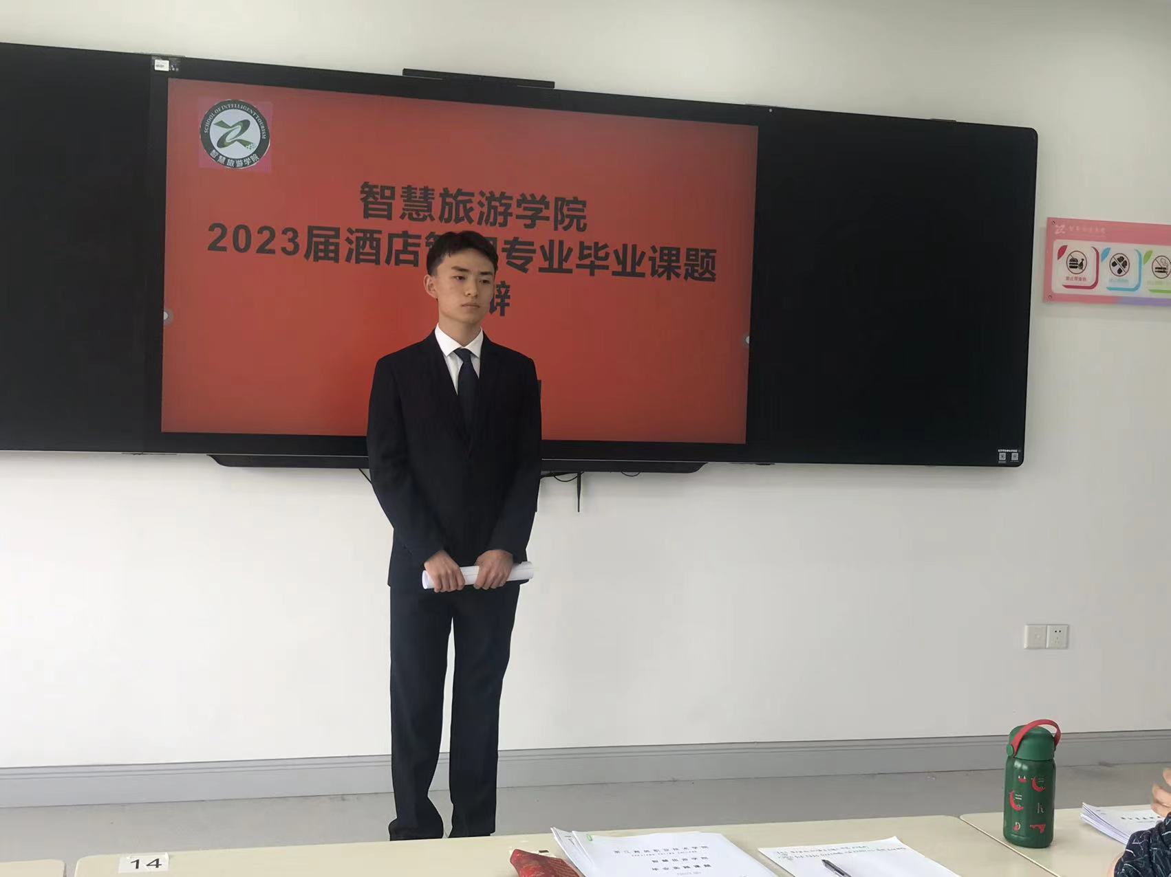 酒店管理与数字化运营专业教研室在智慧旅游学院的课题答辩文件指导下,确定本次论文答辩规范,本次答辩分成两个大组,由8位答辩老师和4位记录员组成,分别安排在1402和1407A教室。两组答辩老师以认真、严谨、负责任的态度,根据答辩的流程,有条不紊地展开答辩工作,保质保量按时完成此次毕业论文答辩工作。