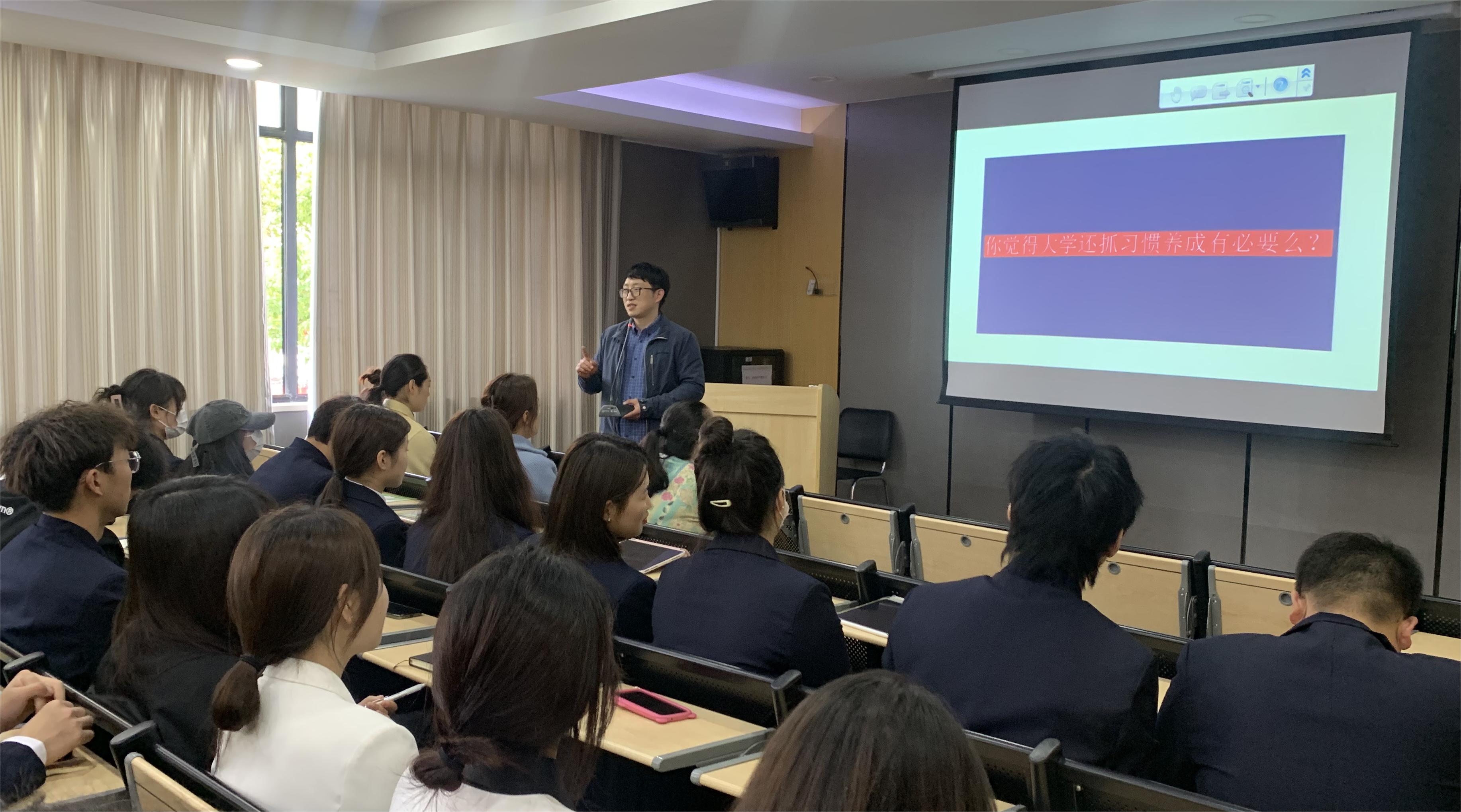 会议开始,张书记围绕以下两个问题1、你觉得辅导员辛苦么?2、你觉得大学还抓习惯养成有必要么?让学生思考并回答,结合同学们的回答和当下学院班级日常工作(手机入袋、学风检查、教室卫生、晚归不归、文明习惯)等问题进行了教育和引导。他讲到辅导员的辛苦来源于同学们未能拥有一个好习惯,由此产生了诸多的学生事务;好习惯的养成终身受用。