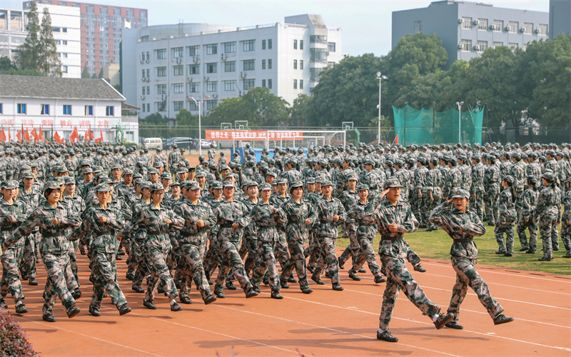 谢鑫作军训总结。她说,通过军训,同学们进一步巩固和提升了国防意识,增强了国防观念和国防素质,强健了体魄和精神,磨砺了意志和品质,增强了团队意识和集体主义精神。军训已结束,大学是全新的开始,每个人的机会都是均等的,只要肯努力,人人都可以出彩、人人都可以成才。她对同学们提出三点希望。一是坚定信仰,爱国明志。希望同学们坚定爱国之心、报国之志,和祖国人民一道,在中国共产党的坚强领导下,勿忘昨天的苦难辉煌,无愧今天的使命担当,不负明天的伟大梦想,为中华复兴而读书,为国家昌盛而拼搏。二是树立理想,砥砺精神。希望同学们牢记并践行“厚德载物 自强不息”的校训精神,续写“责任担当、大爱奉献、顽强拼搏”三种育英精神,不断增强道德修养的自觉性。三是求真务实,练就本领。希望同学们学会主动学习,自主学习,成就真学问、练就真本领;弘扬工匠精神,努力把自己塑造成家国在心里,技能在手上的时代新人;牢记并践行“请党放心,强国有我”, 始终与祖国同向同行。