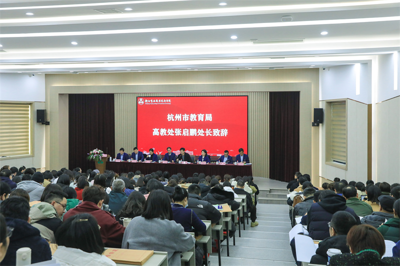 2月16-17日,学校第十次教学工作会议隆重举行。校长丁金昌,常务副校长黄爱平,党委书记、副校长谢鑫,副校长王敏、徐晓斌、崔海辉,教学顾问黄春麟出席,全体教职工参加会议。杭州市教育局高教处处长张启鹏应邀到会讲话。