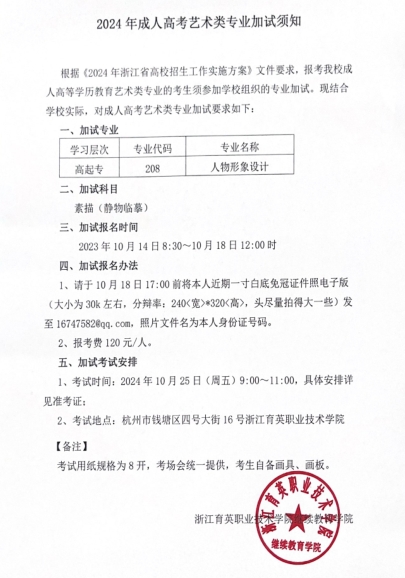 2024年成人高考艺术类专业加试须知