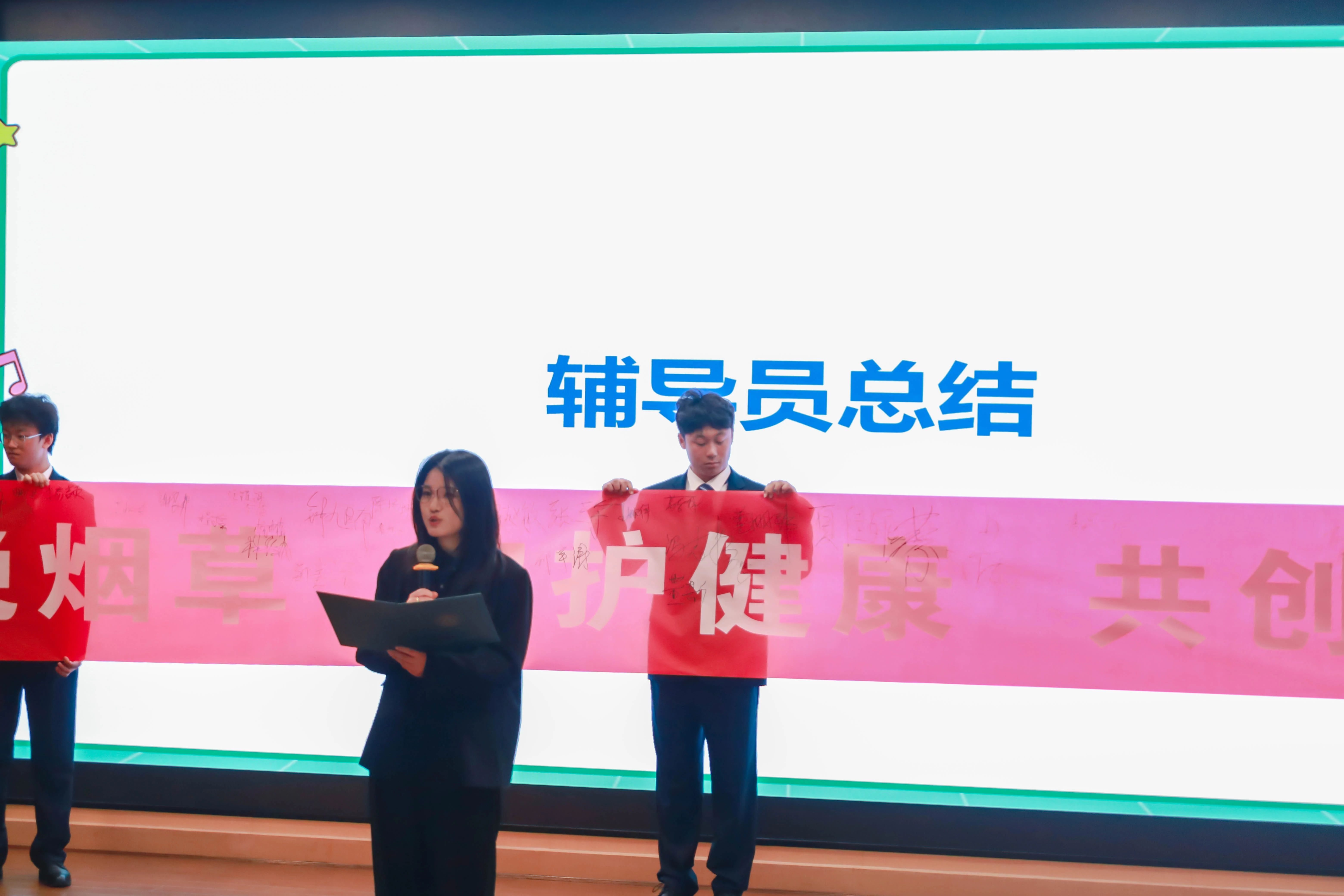 辅导员张铭对本次主题班会的组织过程、开展情况和效果进行点评。她号召同学们携手共同努力,营造一个无烟、健康、和谐的校园环境,成为有责任感、有担当的新时代大学生。