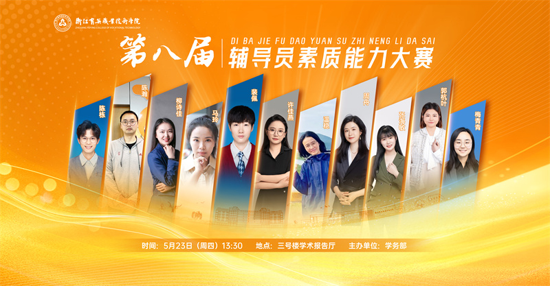 5月23日,学校第八届辅导员素质能力大赛决赛在三楼报告厅举行。 浙江省辅导员素质能力大赛专家评委及深耕学生工作领域的高校专家应邀担任评委。