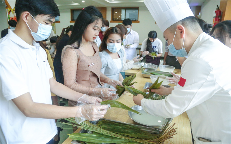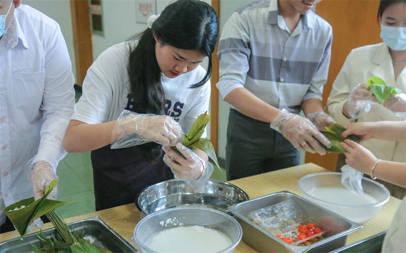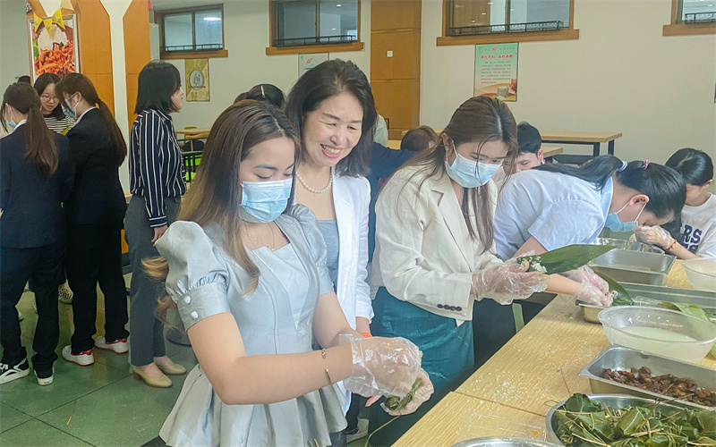 黄爱平为同学们示范了包粽子的方法。她说,要广泛开展留学生“感知中国”系列活动,营造良好的汉语学习环境,在中老文化交流中强化老挝留学生汉语交流、汉语学习,帮助老挝留学生更好地认识中国、读懂中国。