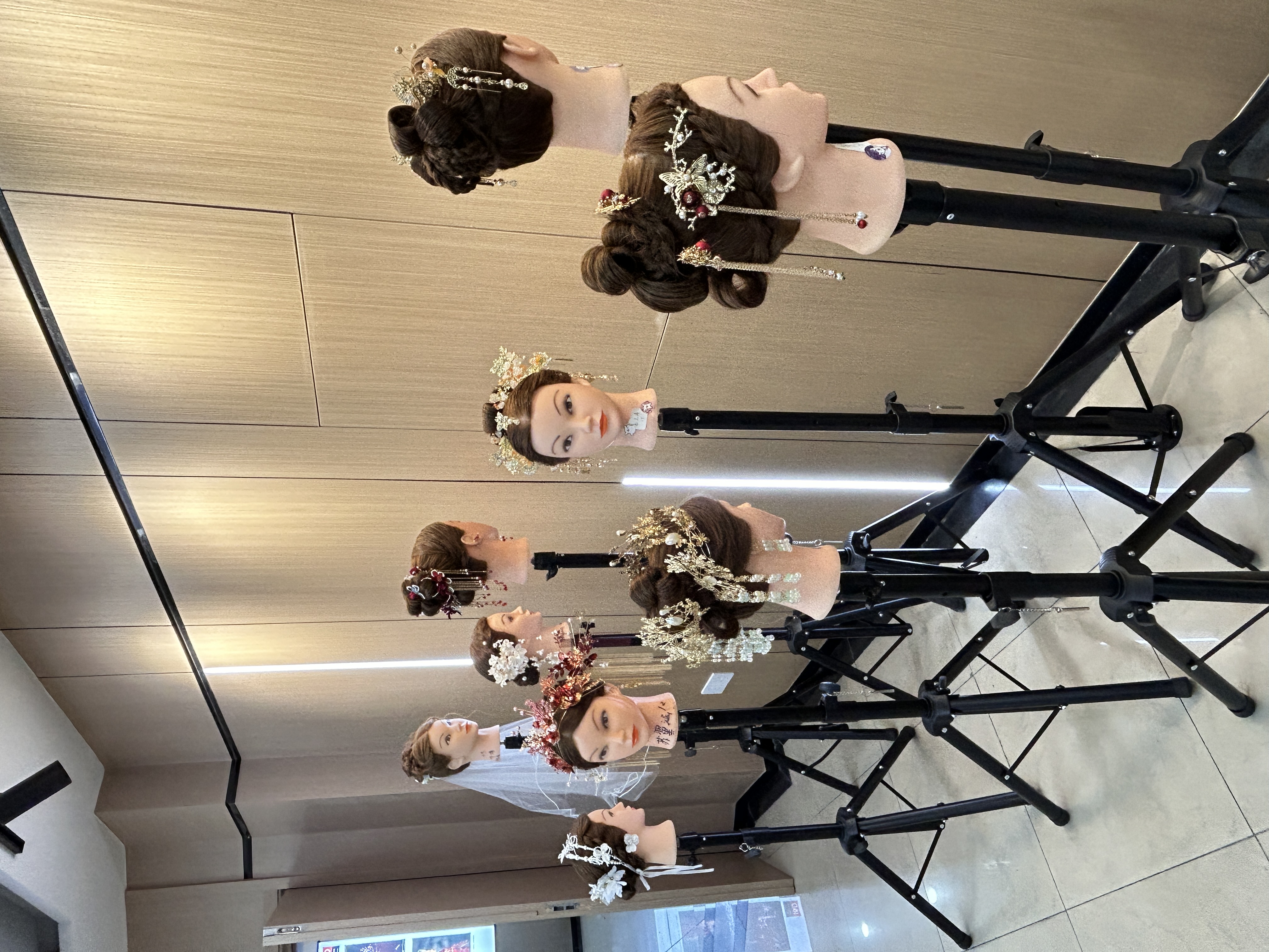 12月25日,设计学院24形象A班的《发型设计》课程结课作品在2号楼5楼大厅展出。此次展览为新娘主题发型设计造型作品展,学生们展出的作品风格各异,特别是新娘白纱造型和新娘秀禾造型,让参观者眼前一亮,也能感受到学生们对发型设计的热情和专注。