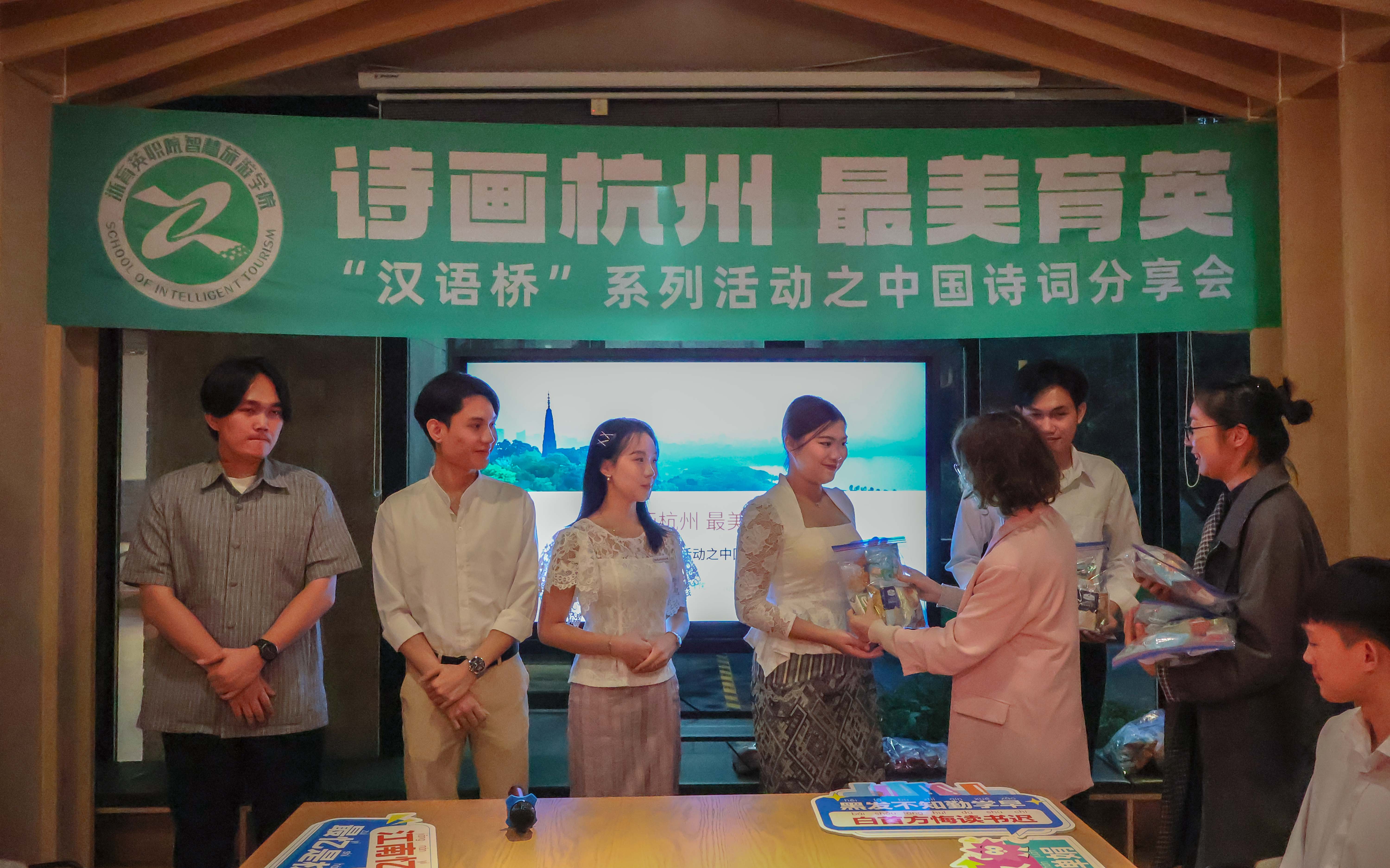 这场以诗为媒的文化盛宴,在秋日杭城绘就了一幅多元共融的画卷。正如董文老师所言:"当老挝学子用中文念出'江南忆'时,我们看到的不仅是语言的交融,更是人类对美好情感的共同向往。"未来,智慧旅游学院将持续以"汉语桥"为纽带,让更多国际青年在诗词歌赋中读懂中国、爱上杭州。