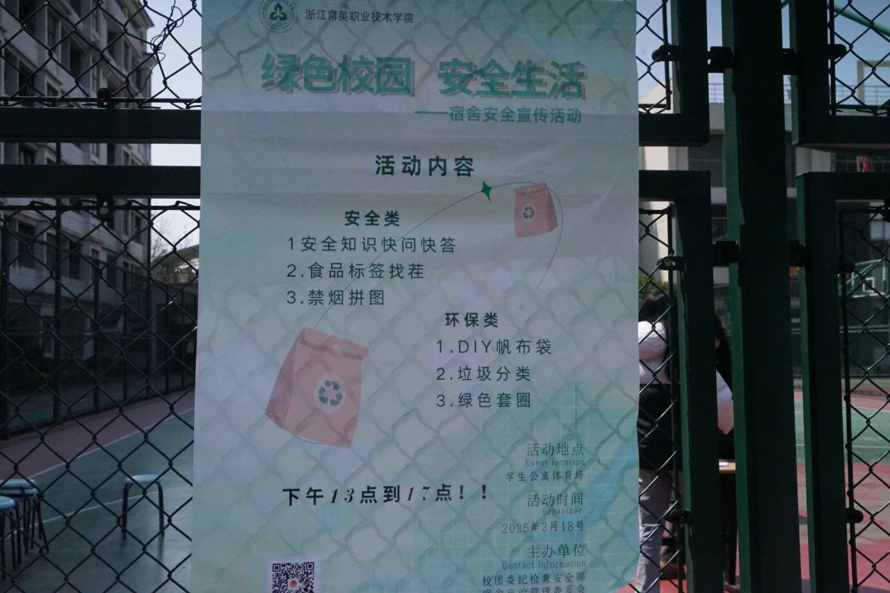 3月18号,由宿管会组织的"绿色校园,安全生活"宿舍安全宣传活动在学生公寓篮球场开展。来自各学院的200多名同学通过五大沉浸式互动体验,在趣味中学习安全知识,用创意诠释环保理念,让我们一起回顾这场充满青春活力的安全教育盛宴!创意与安全的碰撞,你参与了吗?