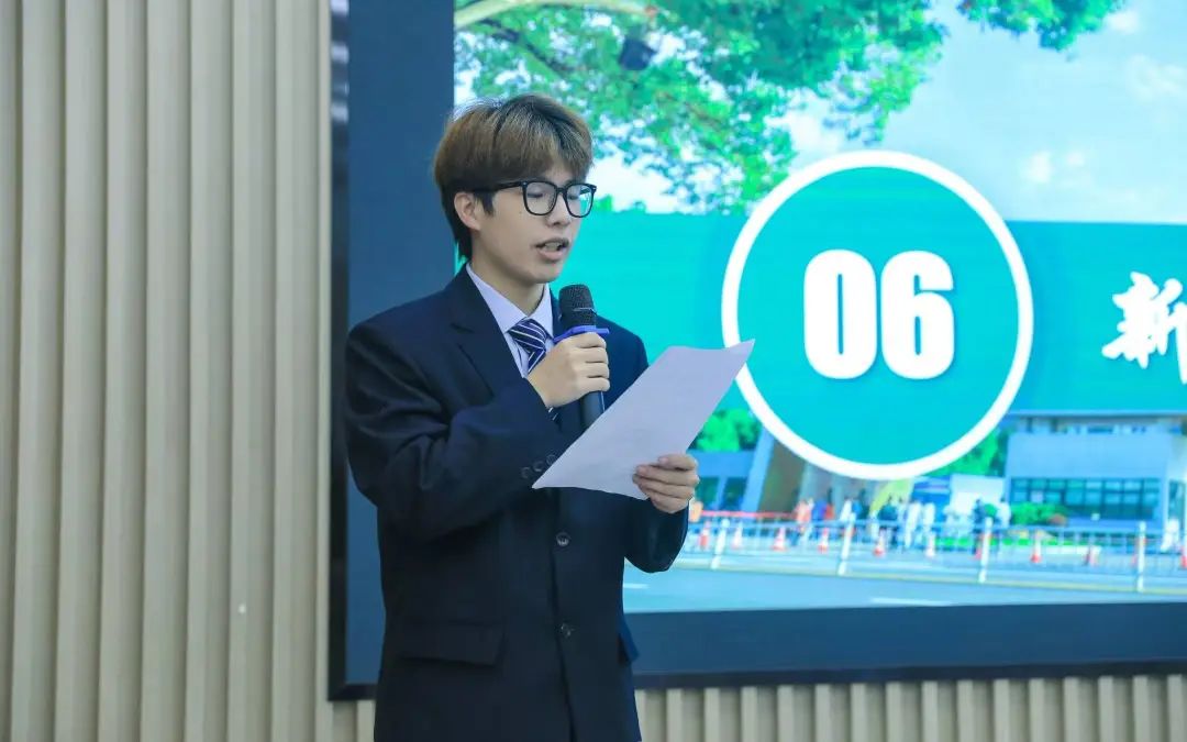 新任院报记者团团长何宇晗登台发表就职讲话。何宇晗围绕团队建设、内容创新等方面阐述未来规划,强调将凝聚成员力量、挖掘校园故事,提升院报影响力。