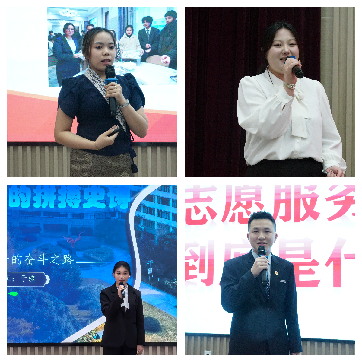 来自各个学院推荐选拔的69位同学精彩亮相,围绕“大爱奉献、责任担当、顽强拼搏”三种精神谈理想、讲故事、说感悟、明誓言,展示青年赤子情怀和奋进力量。他们或着眼于英雄楷模、身边榜样的星光微火,解读大爱奉献的时代注脚;或立足于军营淬炼、社会实践,彰显新时代青年的责任担当;或聚焦于竞技场上战群雄勇将的故事,诠释顽强拼搏的精神内涵。