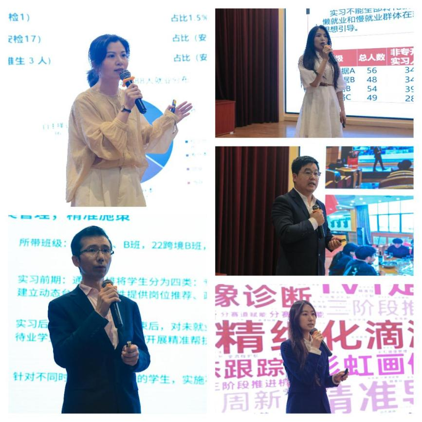 在“辅导员说”环节,“生情熟知”要求辅导员在规定时间内精准陈述随机抽取学生的相关信息,主要考察辅导员对学生基本信息的掌握程度。随后,非毕业班辅导员围绕“主题班会、技能竞赛、社团活动”三大载体,从工作思路、举措、特色、成效等方面,系统呈现“三个十”育人工程实施效果;毕业班辅导员则聚焦实习就业管理,展示从“稳就业”到“优就业”的突破路径。辅导员说充分检验了辅导员队伍的专业素养,彰显了“以生为本”的育人初心。