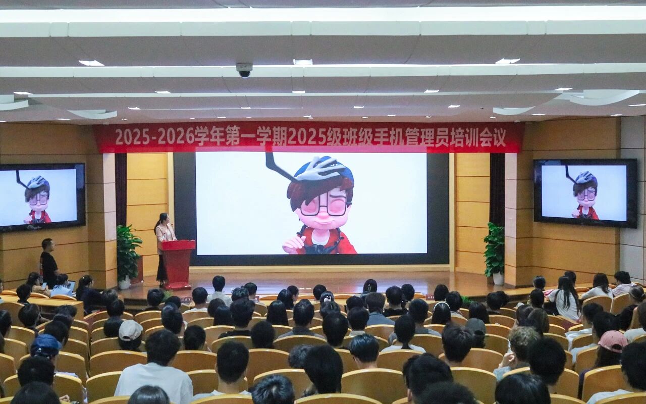为夯实“无手机课堂”学风建设基础,助力班级手机管理员提升工作能力、实现从“事务执行者”向“成长引领者”的角色转变,10月14日下午,学务部召开了2025级班级手机管理员培训会。学校校长助理、学务部部长邬佳,学务部副部长王亦飞,各学院学工办主任以及2025级各班级班长、团支书和手机管理员代表参加会议。学务部童云老师主持会议。